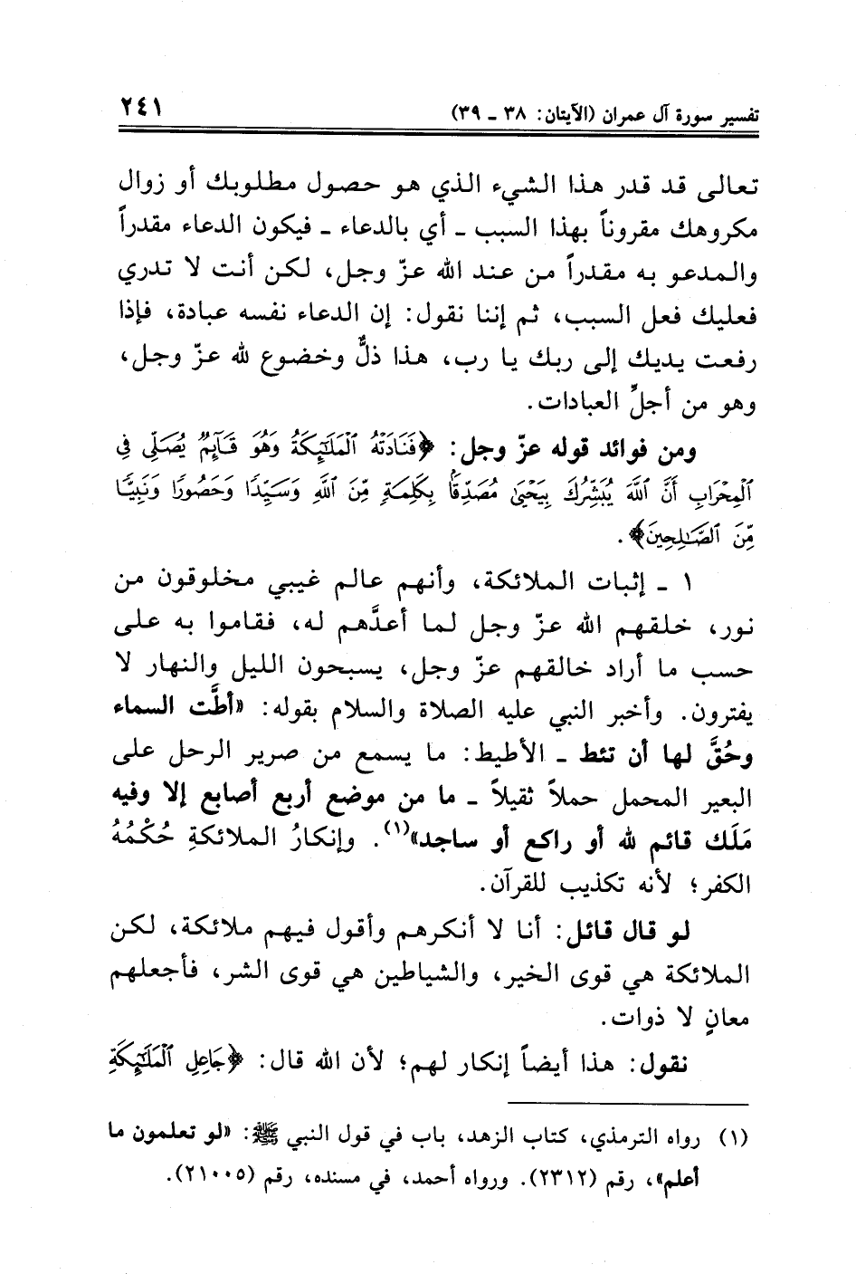 ومن فوائد قوله عزّ وجل: {فَنَادَتْهُ الْمَلَائِكَةُ وَهُوَ قَائِمٌ يُصَلِّي فِي الْمِحْرَابِ أَنَّ اللَّهَ يُبَشِّرُكَ بِيَحْيَى مُصَدِّقًا بِكَلِمَةٍ مِنَ اللَّهِ وَسَيِّدًا وَحَصُورًا وَنَبِيًّا مِنَ الصَّالِحِينَ}.