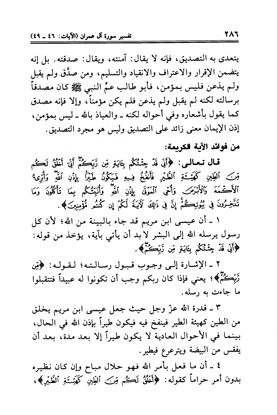 ٣ - قدرة الله عزّ وجل حيث جعل عيسى ابن مريم يخلق من الطين كهيئة الطير فينفخ فيه فيكون طيرًا بإذن الله في الحال، بينما في الأحوال العادية لا يكون طيرًا إلا بعد مدة، بعد أن يفقس من البيضة ويترعرع فيطير.
