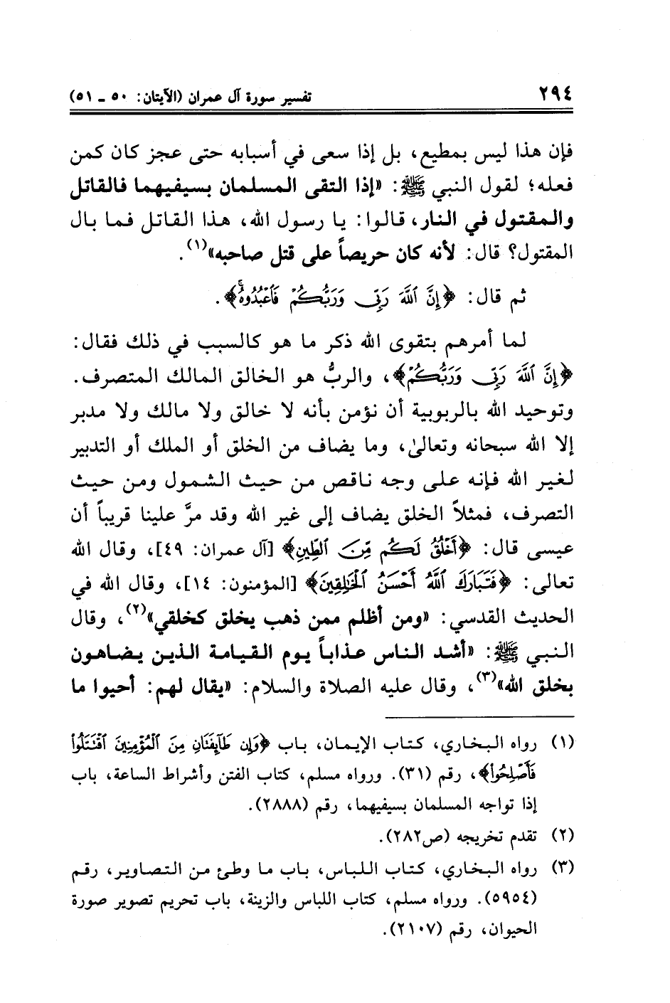 (¬١) رواه البخاري، كتاب الإيمان، باب {وَإِنْ طَائِفَتَانِ مِنَ الْمُؤْمِنِينَ اقْتَتَلُوا فَأَصْلِحُوا} رقم (٣١). ورواه مسلم، كتاب الفتن وأشراط الساعة، باب إذا تواجه المسلمان بسيفيهما، رقم (٢٨٨٨).