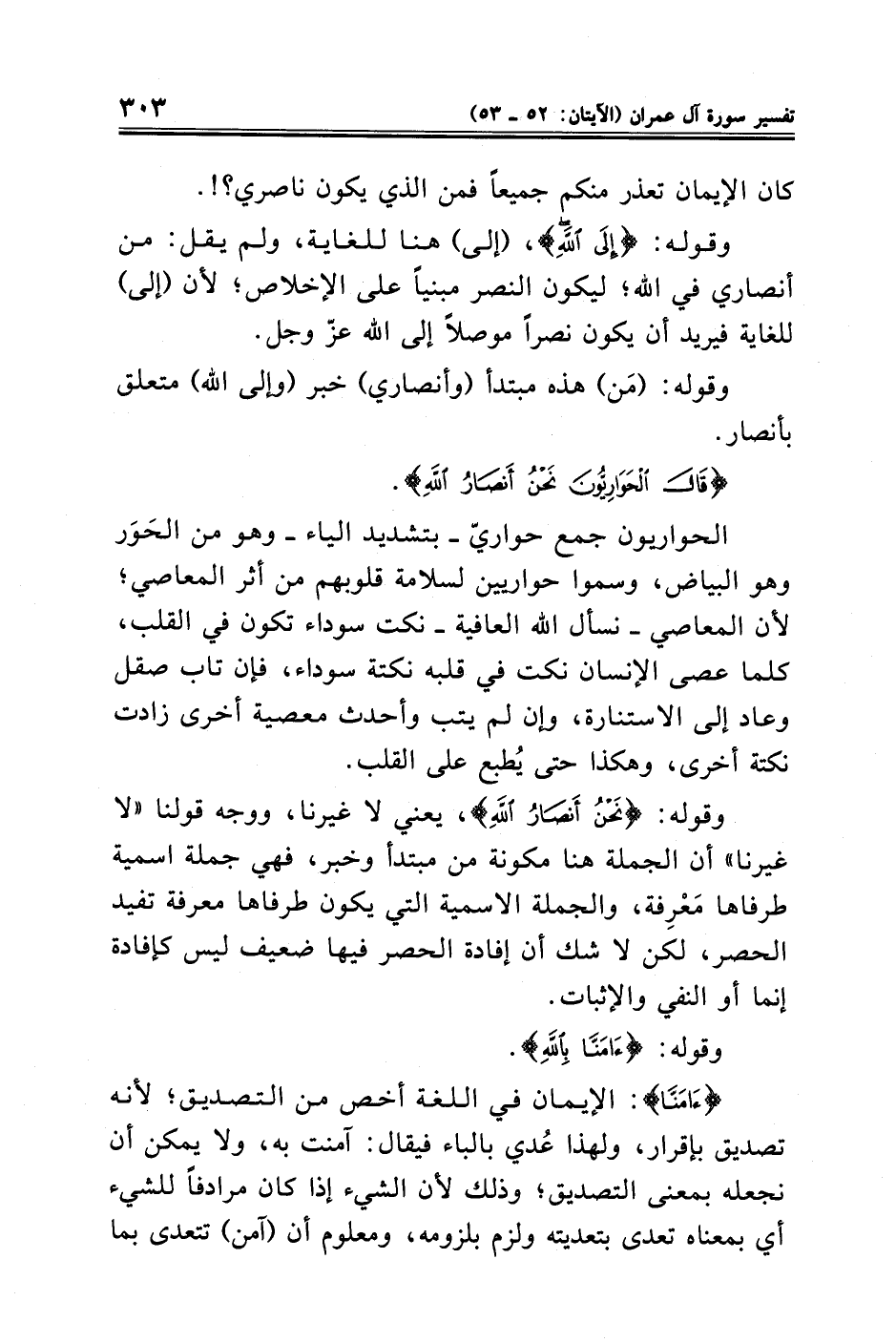 وقوله: {نَحْنُ أَنْصَارُ اللَّهِ}، يعني لا غيرنا، ووجه قولنا "لا غيرنا" أن الجملة هنا مكونة من مبتدأ وخبر، فهي جملة اسمية طرفاها مَعْرِفة، والجملة الاسمية التي يكون طرفاها معرفة تفيد الحصر، لكن لا شك أن إفادة الحصر فيها ضعيف ليس كإفادة إنما أو النفي والإثبات.