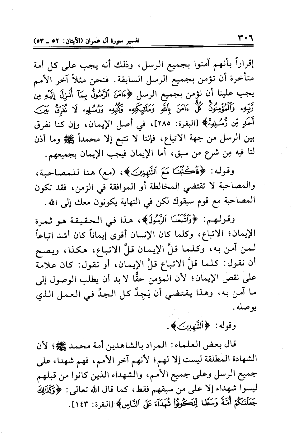 وقولهم: {وَاتَّبَعْنَا الرَّسُولَ}، هذا في الحقيقة هو ثمرة الإيمان؛ الاتباع، وكلما كان الإنسان أقوى إيمانًا كان أشد اتباعًا لمن آمن به، وكلما قلَّ الإيمان قلَّ الاتباع، هكذا، ويصح أن نقول: كلما قلَّ الاتباع قلَّ الإيمان، أو نقول: كان علامة على نقص الإيمان؛ لأن المؤمن حقًّا لابد أن يطلب الوصول إلى ما آمن به، وهذا يقتضي أن يَجِدَّ كل الجدِّ في العمل الذي يوصله.