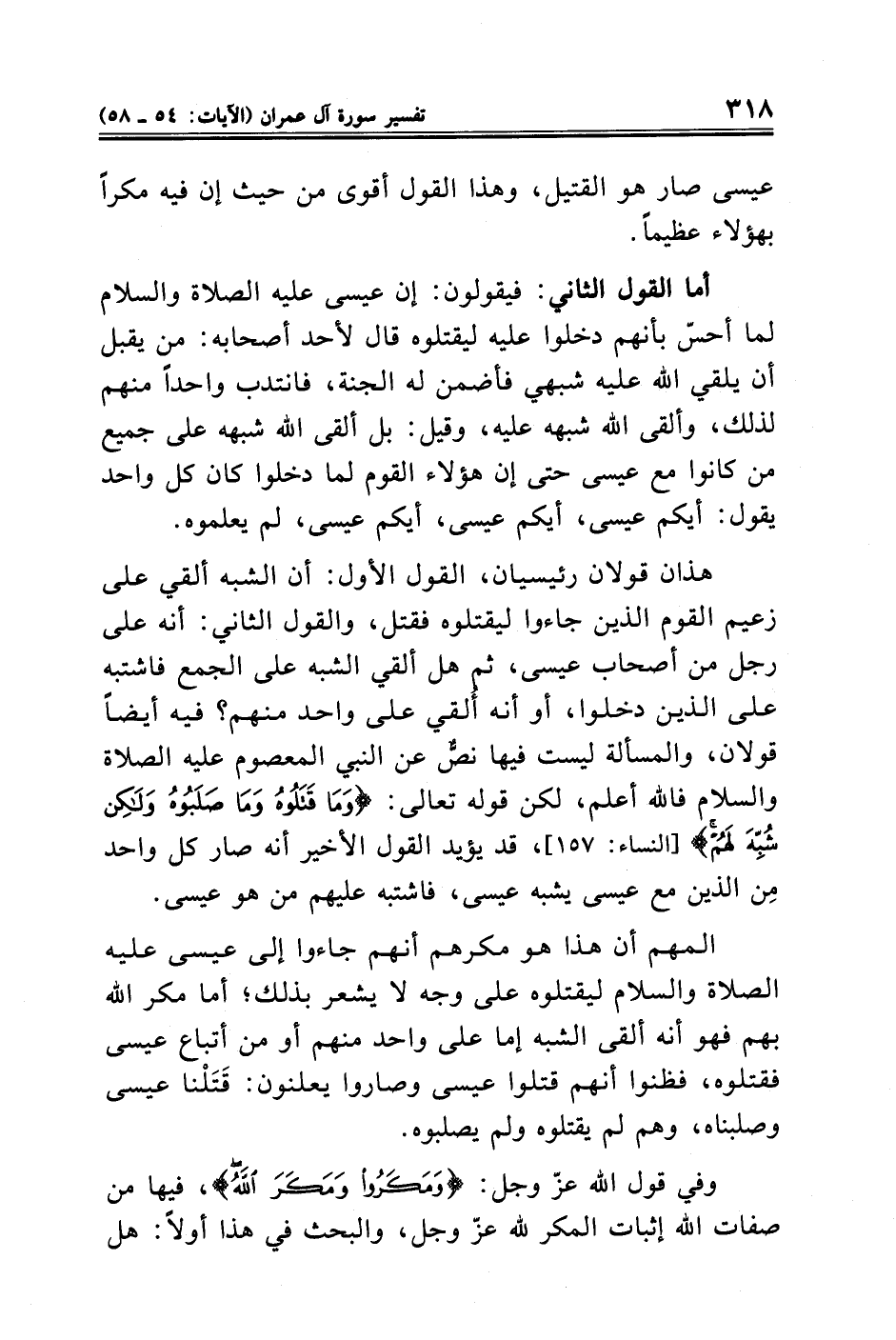 المهم أن هذا هو مكرهم أنهم جاءوا إلى عيسى عليه الصلاة والسلام ليقتلوه على وجه لا يشعر بذلك؛ أما مكر الله بهم فهو أنه ألقى الشبه إما على واحد منهم أو من أتباع عيسى فقتلوه، فظنوا أنهم قتلوا عيسى وصاروا يعلنون: قَتَلْنا عيسى وصلبناه، وهم لم يقتلوه ولم يصلبوه.