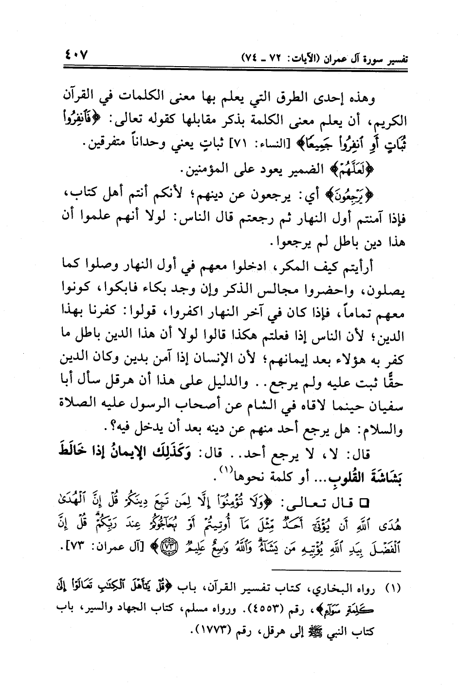 (¬١) رواه البخاري، كتاب تفسير القرآن، باب {قُلْ يَاأَهْلَ الْكِتَابِ تَعَالَوْا إِلَى كَلِمَةٍ سَوَاءٍ}، رقم (٤٥٥٣). ورواه مسلم، كتاب الجهاد والسير، باب كتاب النبي - صلى الله عليه وسلم - إلى هرقل، رقم (١٧٧٣).