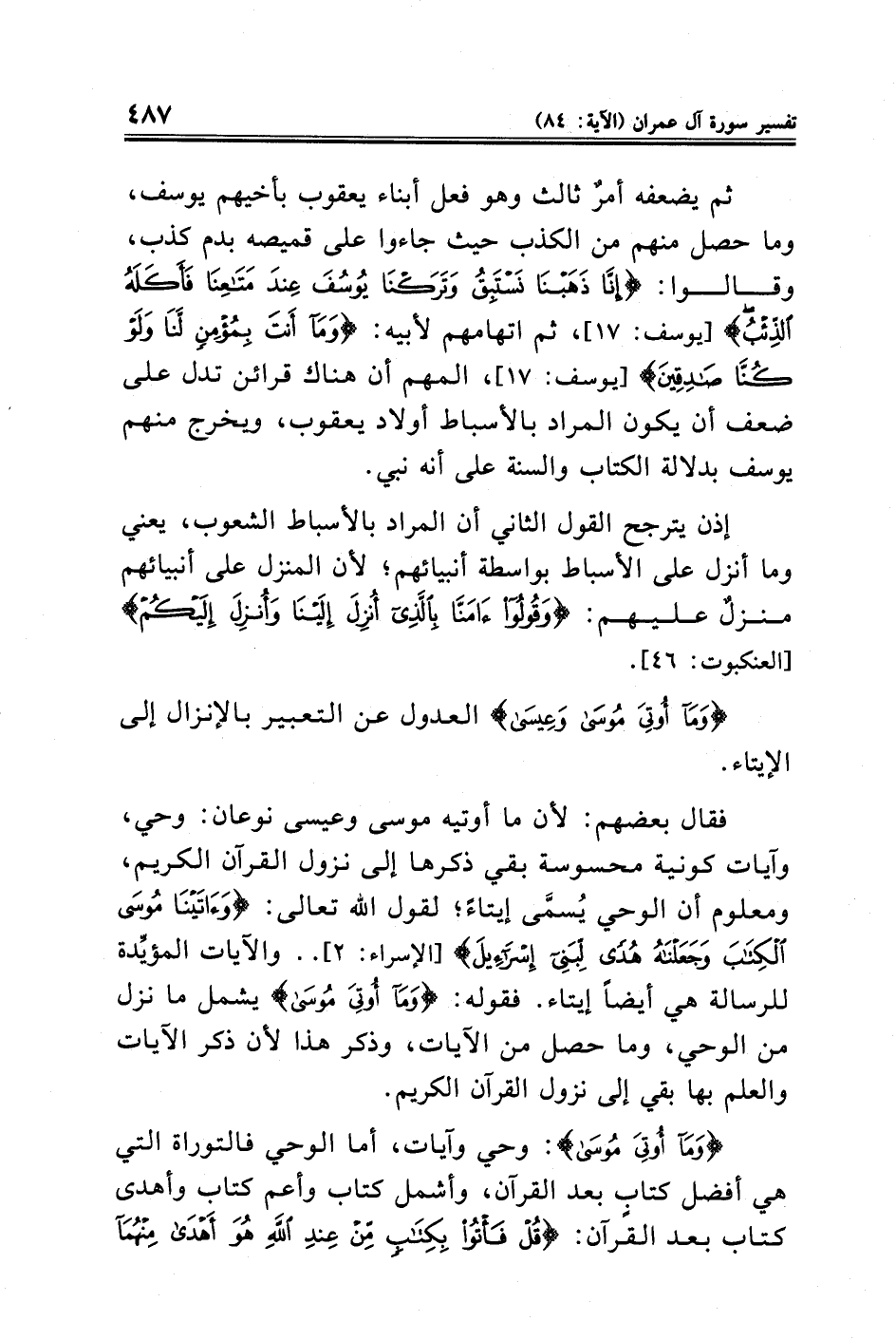 إذن يترجح القول الثاني أن المراد بالأسباط الشعوب، يعني وما أنزل على الأسباط بواسطة أنبيائهم؛ لأن المنزل على أنبيائهم منزلٌ عليهم: {وَقُولُوا آمَنَّا بِالَّذِي أُنْزِلَ إِلَيْنَا وَأُنْزِلَ إِلَيْكُمْ} [العنكبوت: ٤٦].
