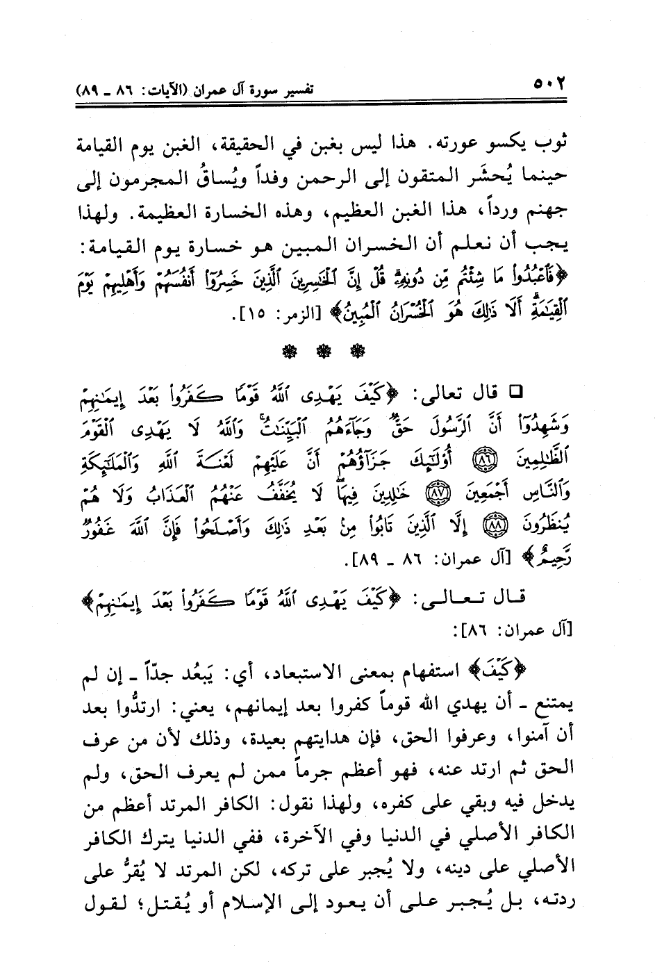 قال تعالى: {كَيْفَ يَهْدِي اللَّهُ قَوْمًا كَفَرُوا بَعْدَ إِيمَانِهِمْ} [آل عمران: ٨٦]: