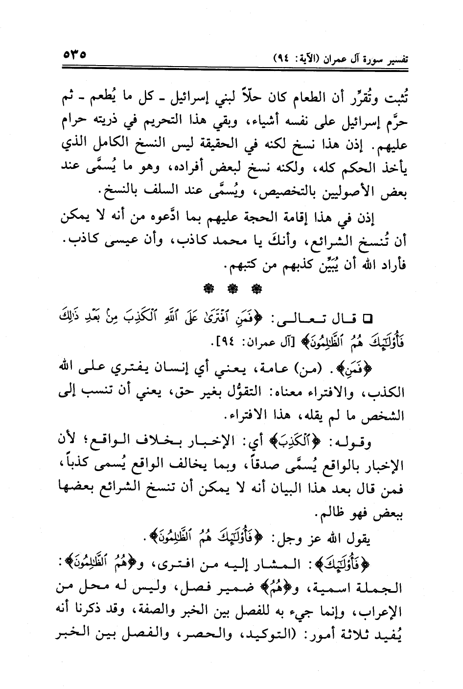 • قال تعالى: {فَمَنِ افْتَرَى عَلَى اللَّهِ الْكَذِبَ مِنْ بَعْدِ ذَلِكَ فَأُولَئِكَ هُمُ الظَّالِمُونَ} [آل عمران: ٩٤].