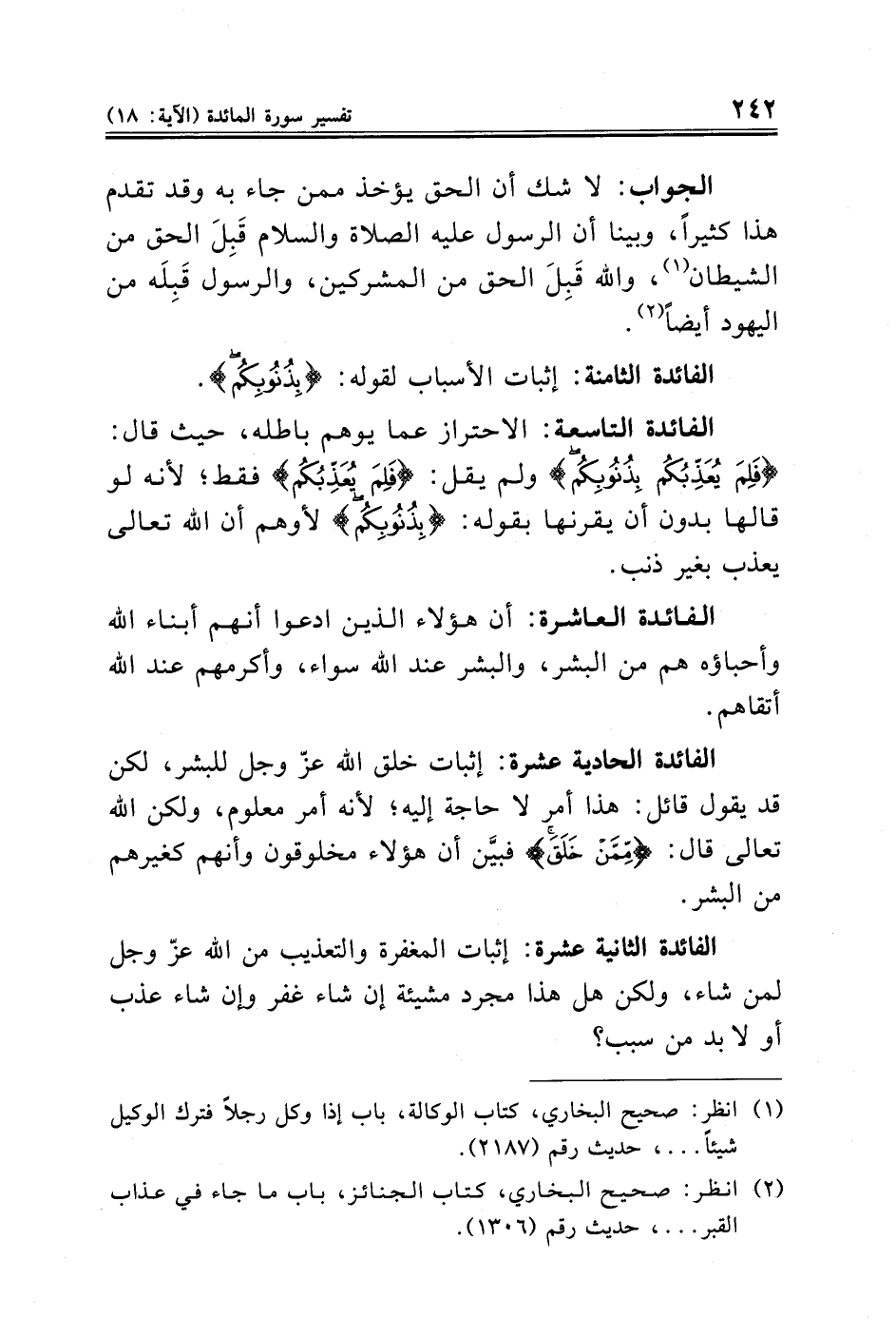 الفائدة الثانية عشرة: إثبات المغفرة والتعذيب من الله عزّ وجل لمن شاء، ولكن هل هذا مجرد مشيئة إن شاء غفر وإن شاء عذب أو لابد من سبب؟