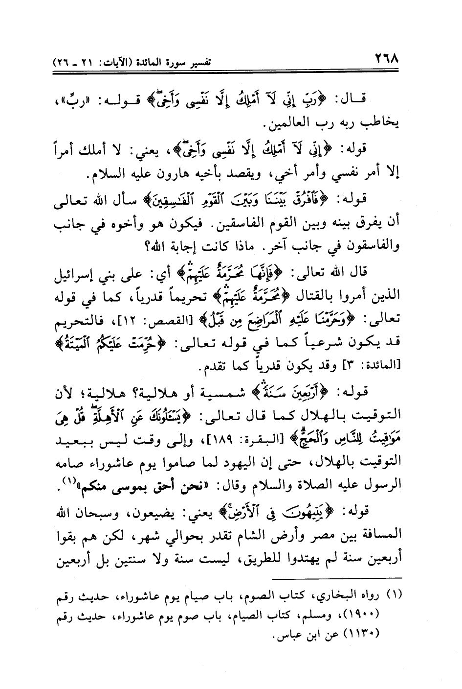 قوله: {أَرْبَعِينَ سَنَةً} شمسية أو هلالية؟ هلالية؛ لأن التوقيت بالهلال كما قال تعالى: {يَسْأَلُونَكَ عَنِ الْأَهِلَّةِ قُلْ هِيَ مَوَاقِيتُ لِلنَّاسِ وَالْحَجِّ} [البقرة: ١٨٩] , وإلى وقت ليس ببعيد التوقيت بالهلال، حتى إن اليهود لما صاموا يوم عاشوراء صامه الرسول عليه الصلاة والسلام وقال: "نحن أحق بموسى منكم" (¬١).
