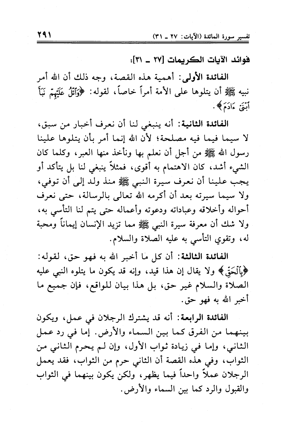 فوائد الآيات الكريمات [٢٧ - ٣١]: