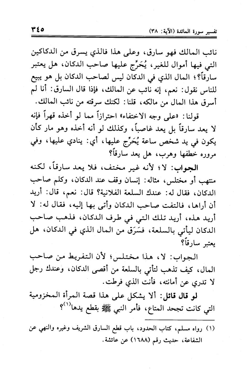 (¬١) رواه مسلم، كتاب الحدود، باب قطع السارق الشريف وغيره والنهي عن الشفاعة، حديث رقم (١٦٨٨) عن عائشة.