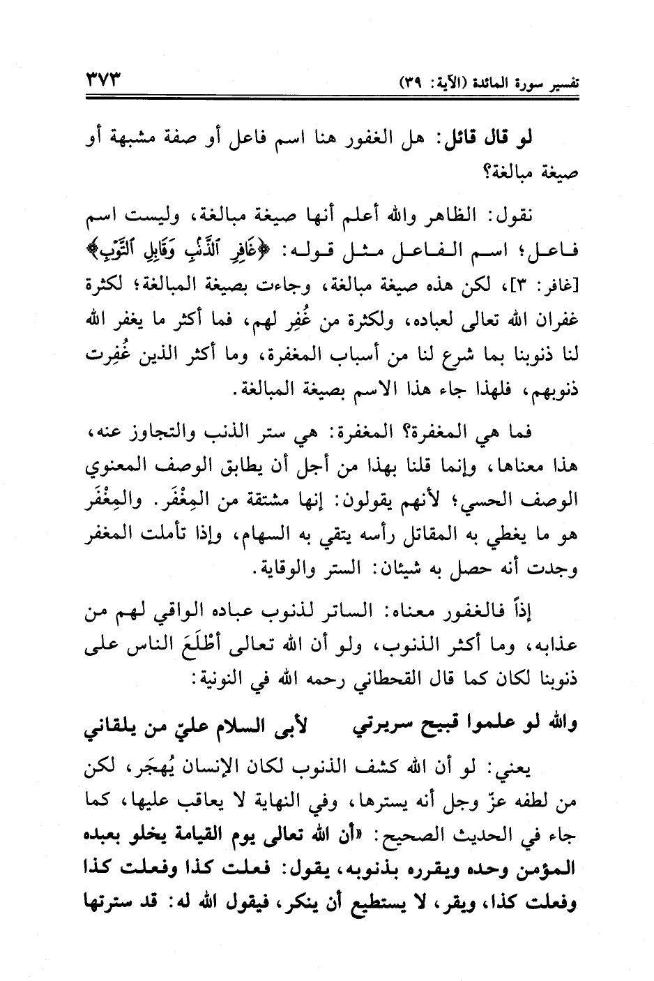 لو قال قائل: هل الغفور هنا اسم فاعل أو صفة مشبهة أو صيغة مبالغة؟