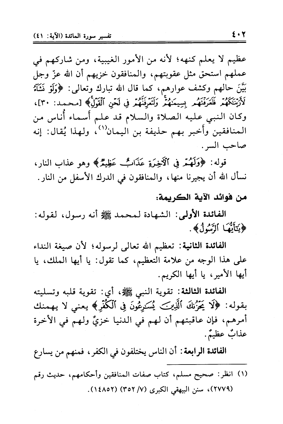 (¬١) انظر: صحيح مسلم، كتاب صفات المنافقين وأحكامهم، حديث رقم (٢٧٧٩)، سنن البيهقي الكبرى (٧/ ٣٥٢) (١٤٨٥٢).