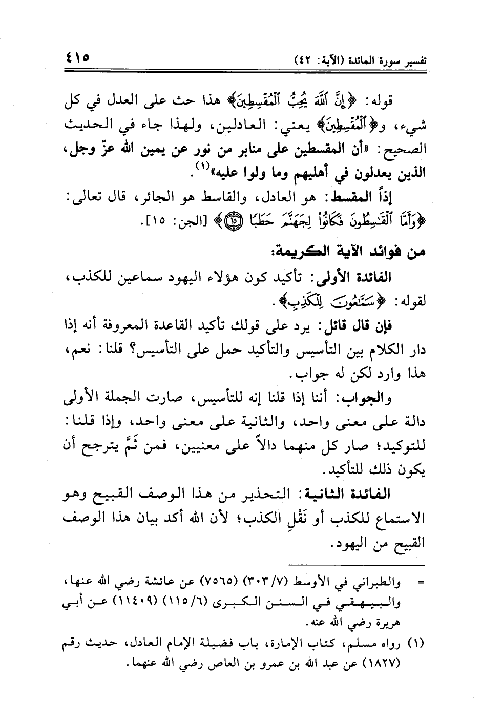 (¬١) رواه مسلم، كتاب الإمارة، باب فضيلة الإمام العادل، حديث رقم (١٨٢٧) عن عبد الله بن عمرو بن العاص رضي الله عنهما.