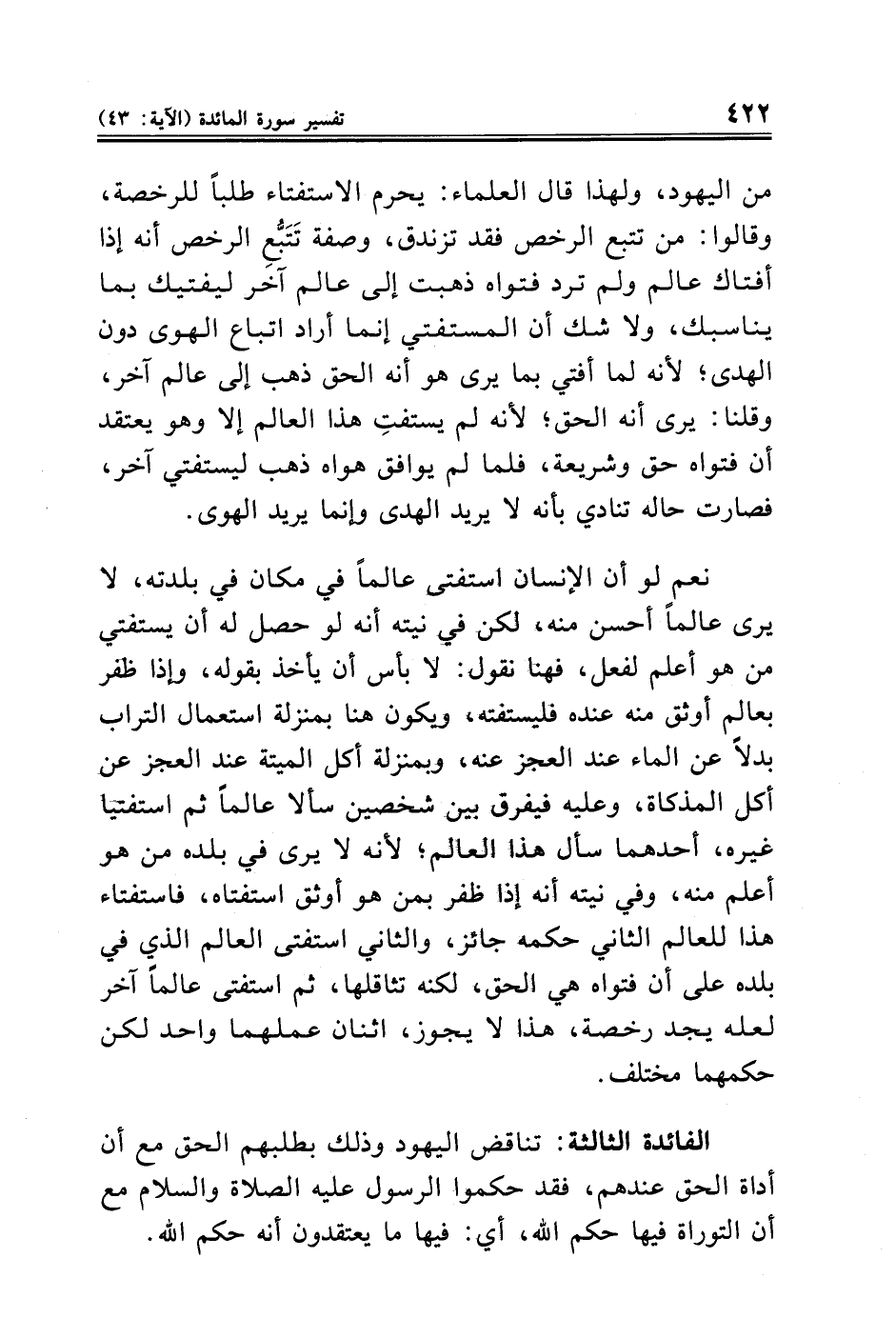 الفائدة الثالثة: تناقض اليهود وذلك بطلبهم الحق مع أن أداة الحق عندهم، فقد حكموا الرسول عليه الصلاة والسلام مع أن التوراة فيها حكم الله، أي: فيها ما يعتقدون أنه حكم الله.