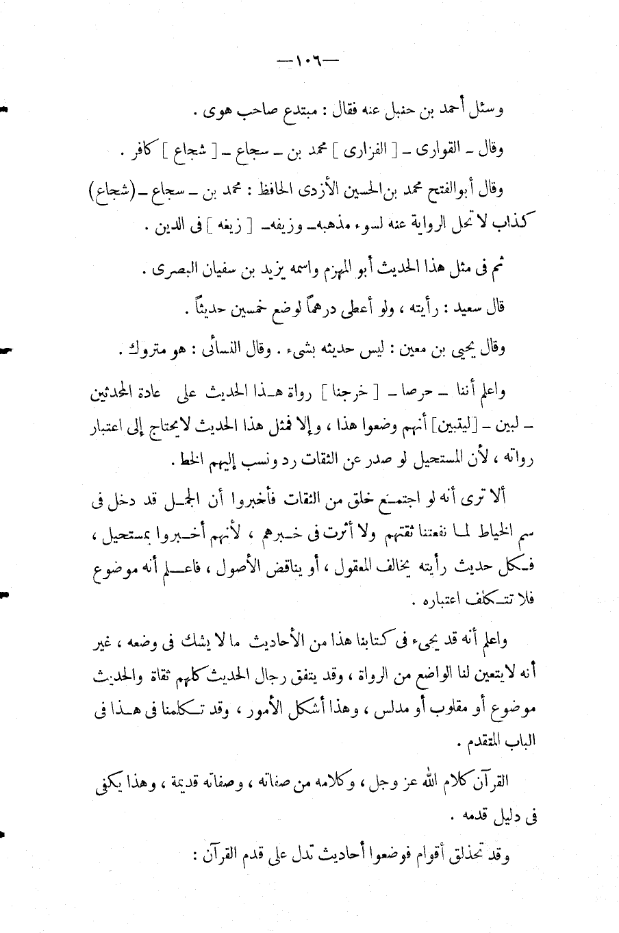 وَقَالَ أَبُو الْفَتْح مُحَمَّد بن الْحُسَيْن الْأَزْدِيّ الْحَافِظ: مُحَمَّد بن سجاع (شُجَاع) كَذَّاب لَا تحل الرِّوَايَة عَنهُ لسوء مذْهبه وزيفه [زيغه] فِي الدَّين.