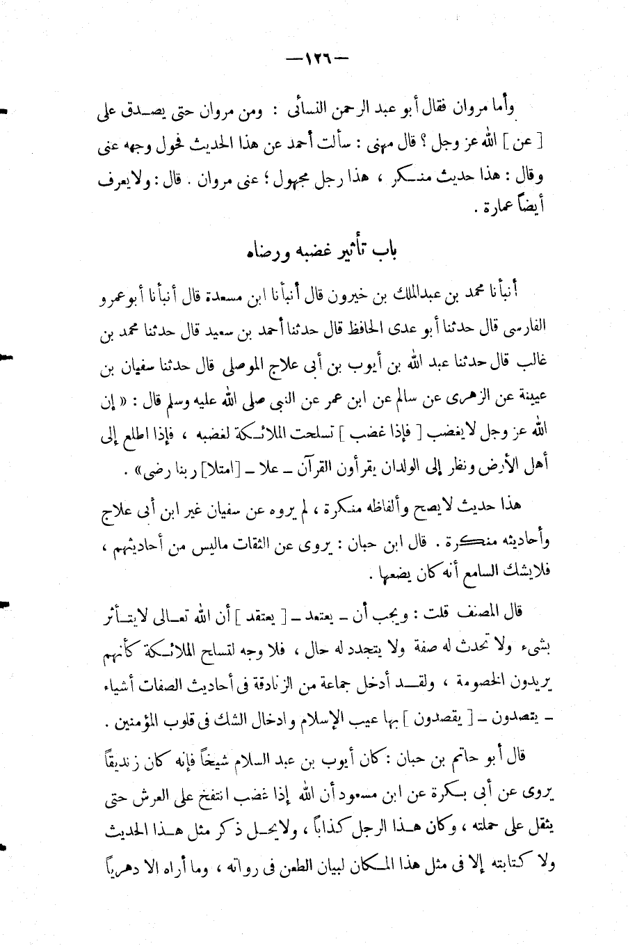 بَاب تَأْثِير غَضَبه وَرضَاهُ أَنبأَنَا مُحَمَّد بن عبد المك بْنِ خَيْرُونٍ قَالَ أَنْبَأَنَا ابْنُ مَسْعَدَةَ قَالَ أَنْبَأَنَا أَبُو عَمْرٍو الْفَارِسِيُّ قَالَ حَدَّثَنَا أَبُو عَدِيٍّ الْحَافِظ قَالَ حَدثنَا أَحْمد بن سَعِيدٍ قَالَ حَدَّثَنَا مُحَمَّدُ بْنُ غَالب قَالَ حَدثنَا عبد الله بْنُ أَيُّوبَ بْنِ أَبِي عِلاجٍ الْمَوْصِلِيُّ قَالَ حَدَّثَنَا سُفْيَانُ بْنُ
