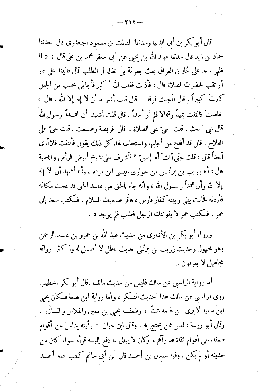 قَالَ أَبُو بكر بن أبي الدُّنْيَا وَحدثنَا الصَّلْت بن مَسْعُود الجحدري قَالَ حَدَّثَنَا حَمَّاد بن زيد قَالَ حَدثنَا عبيد الله بن يحيى عَن أبي جَعْفَر مُحَمَّد بن عَليّ قَالَ: " لما ظهر سعد على حلوان الْعرَاق بعث جَعونَة بن نَضْلَة فِي الطّلب قَالَ فأتينا على غَار أَو ثقب فخضرت الصَّلَاة قَالَ: فَأَذنت فَقلت الله أكبر فَأَجَابَنِي مُجيب من الْجَبَل كَبرت كَبِيرا.