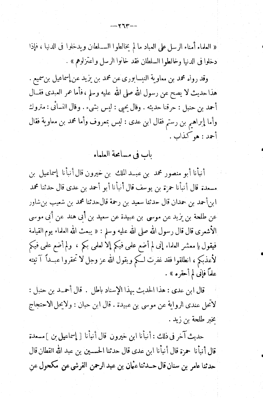 بَاب فِي مُسَامَحَة الْعلمَاء