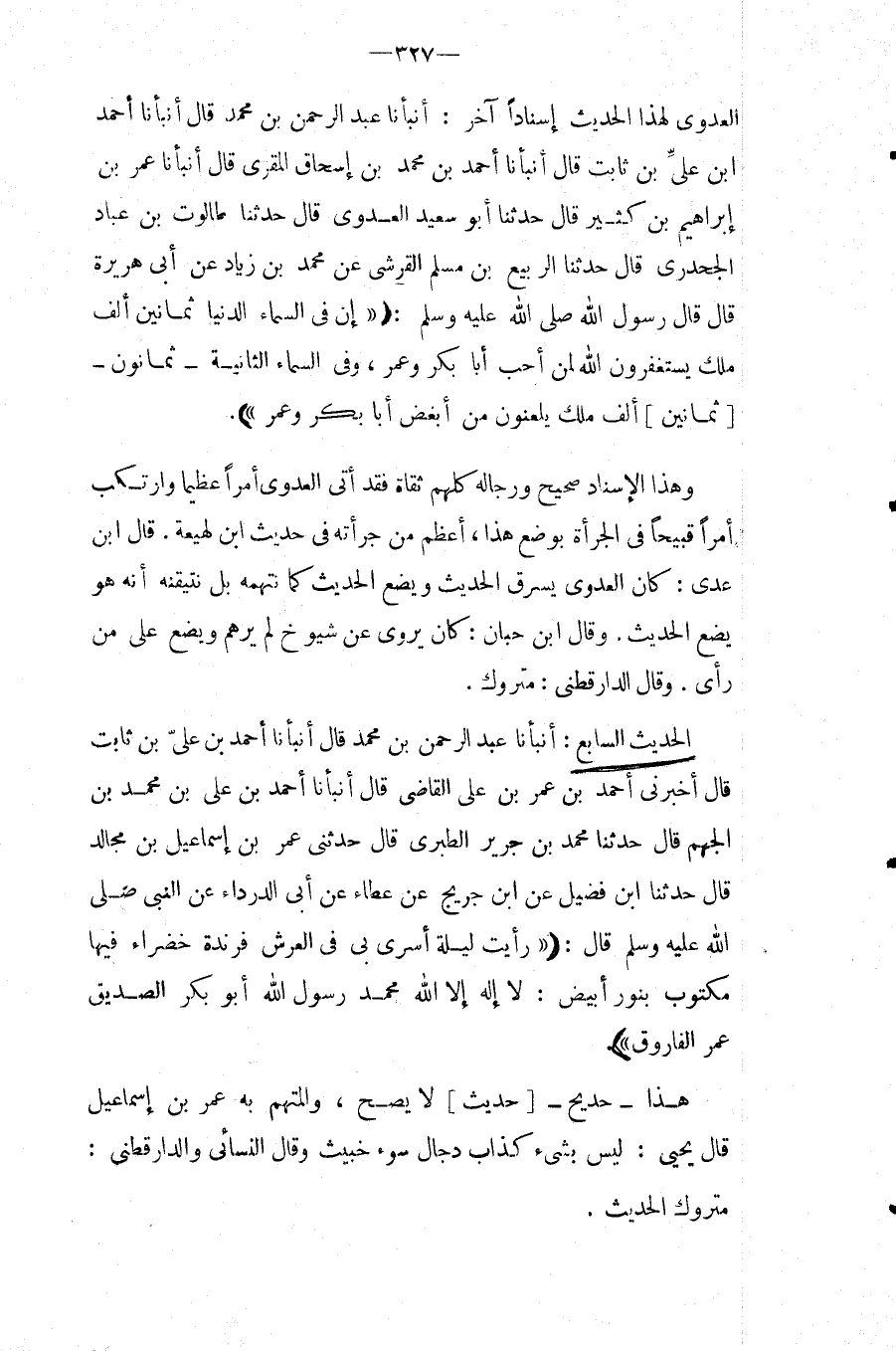 وَهَذَا الْإِسْنَاد صَحِيح وَرِجَاله كلهم ثقاة فقد أَتَى الْعَدوي أمرا عَظِيما وارتكب أمرا قبيحا فِي الجرأة بِوَضْع هَذَا، أعظم من جرأته فِي حَدِيث ابْن لعيعة.