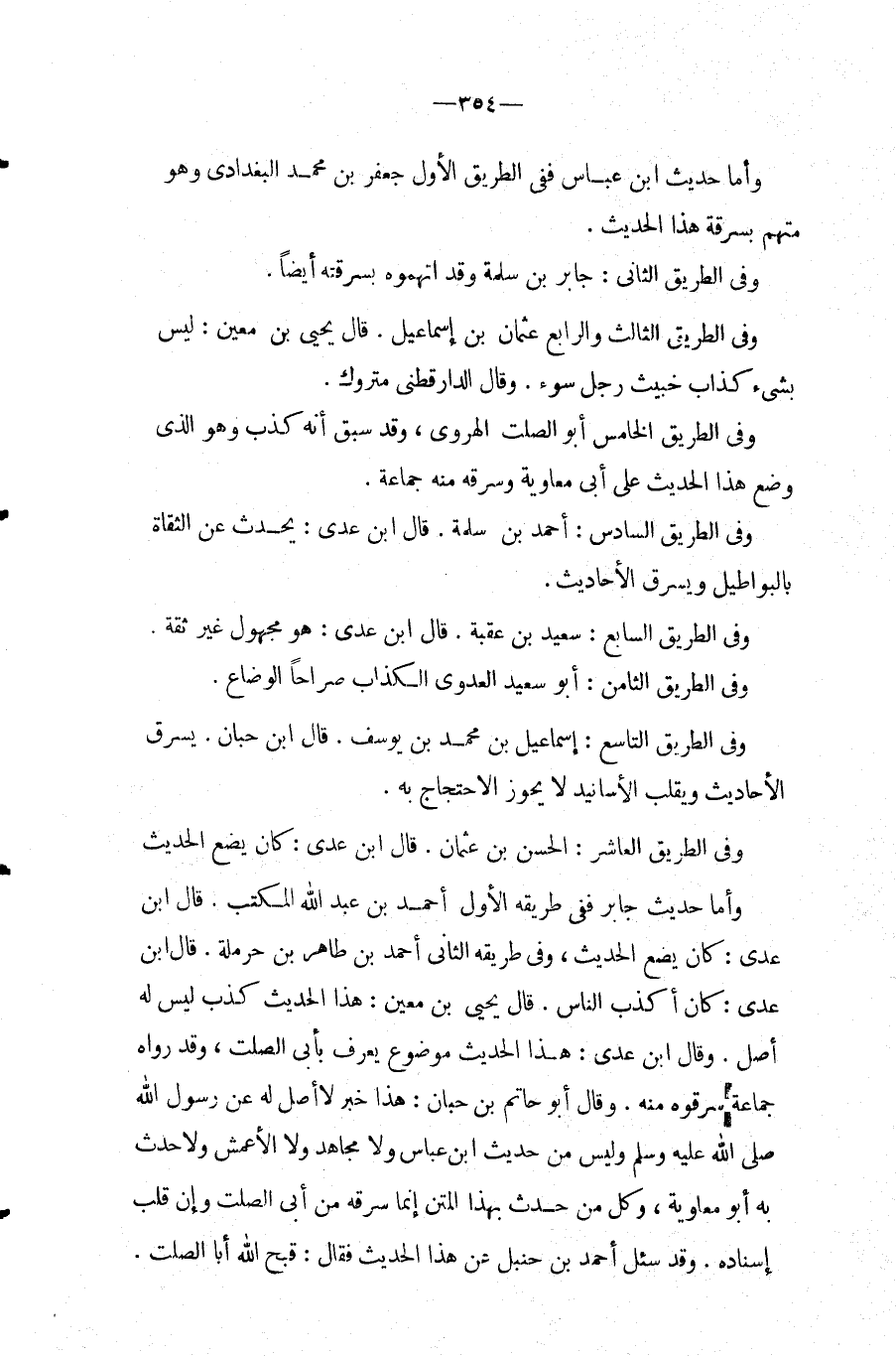 وَقد سُئِلَ أَحْمد بن حَنْبَل عَن هَذَا الحَدِيث فَقَالَ: قبح الله أَبَا الصَّلْت.