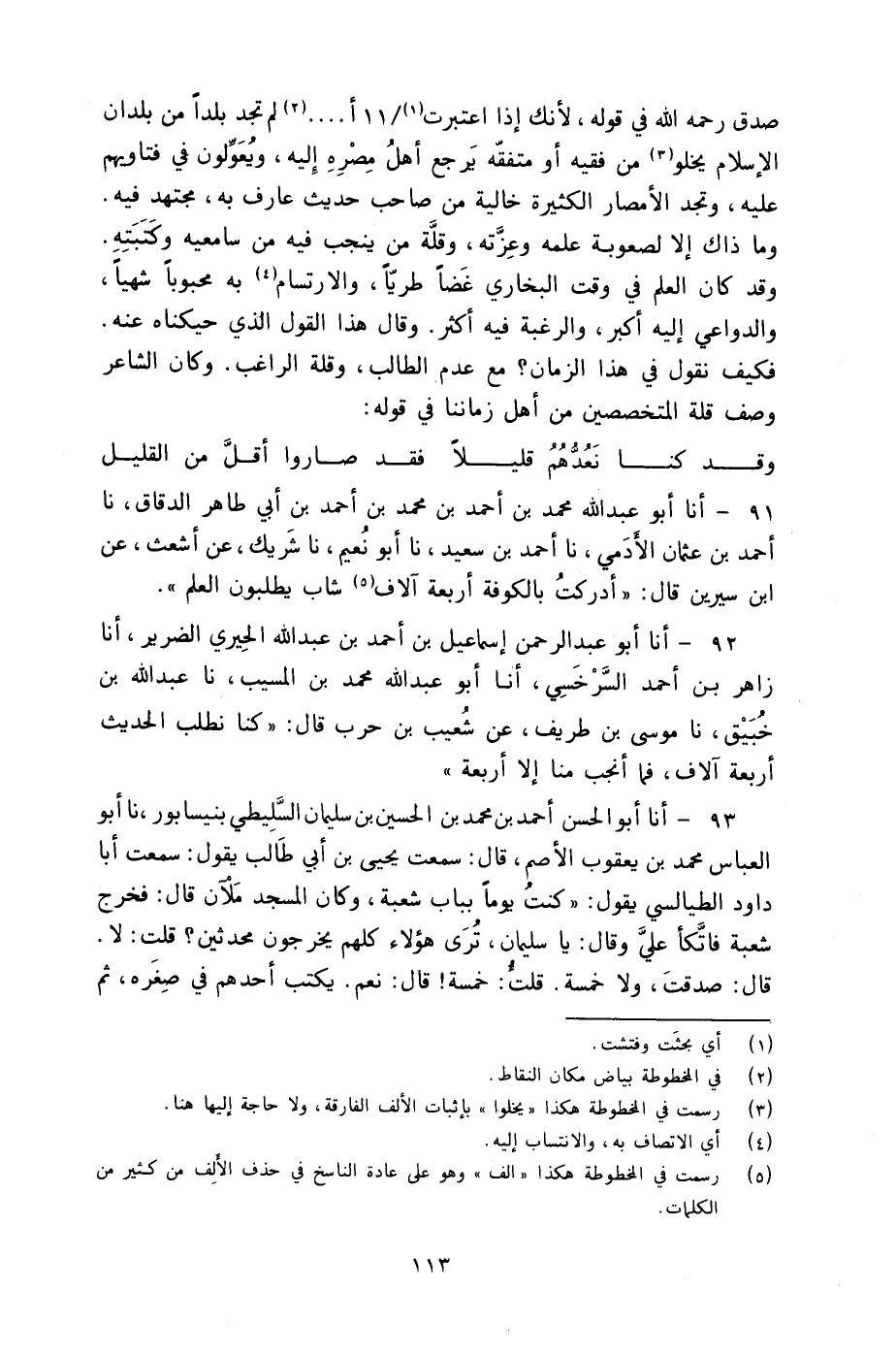 92 - أنا أَبُو عَبْدِ الرَّحْمَنِ إِسْمَاعِيلُ بْنُ أَحْمَدَ بْنِ عَبْدِ اللًّهِ الْحِيرِيُّ الضَّرِيرُ، أنا زَاهِرُ بْنُ أَحْمَدَ السَّرَخْسِيُّ، أنا أَبُو عَبْدِ اللَّهِ مُحَمَّدُ بْنُ الْمُسَيَّبِ، نا عَبْدُ اللَّهِ بْنُ خُبَيْقٍ، نا مُوسَى بْنُ طَرِيفٍ، عَنْ شُعَيْبِ بْنِ حَرْبٍ، قَالَ: «§كُنَّا نَطْلُبُ الْحَدِيثَ أَرْبَعَةَ آلَافٍ، فَمَا أَنْجَبَ مِنَّا إِلَّا أَرْبَعَةٌ»