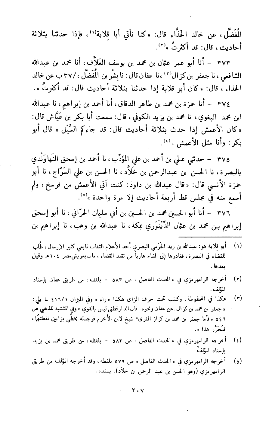 373 - أنا أَبُو عُمَرَ عُثْمَانُ بْنُ مُحَمَّدِ بْنِ يُوسُفَ الْعَلَّافُ، أنا مُحَمَّدُ بْنُ عَبْدِ اللَّهِ الشَّافِعِيُّ، نا جَعْفَرُ بْنُ كَزَالٍ، نا عَفَّانُ، قَالَ، نا بِشْرُ بْنُ الْمُفَضَّلِ، عَنْ خَالِدٍ الْحَذَّاءِ، قَالَ: " §كَانَ أَبُو قِلَابَةَ إِذَا حَدَّثَنَا بِثَلَاثَةِ أَحَادِيثَ قَالَ: «قَدْ أَكْثَرْتُ»