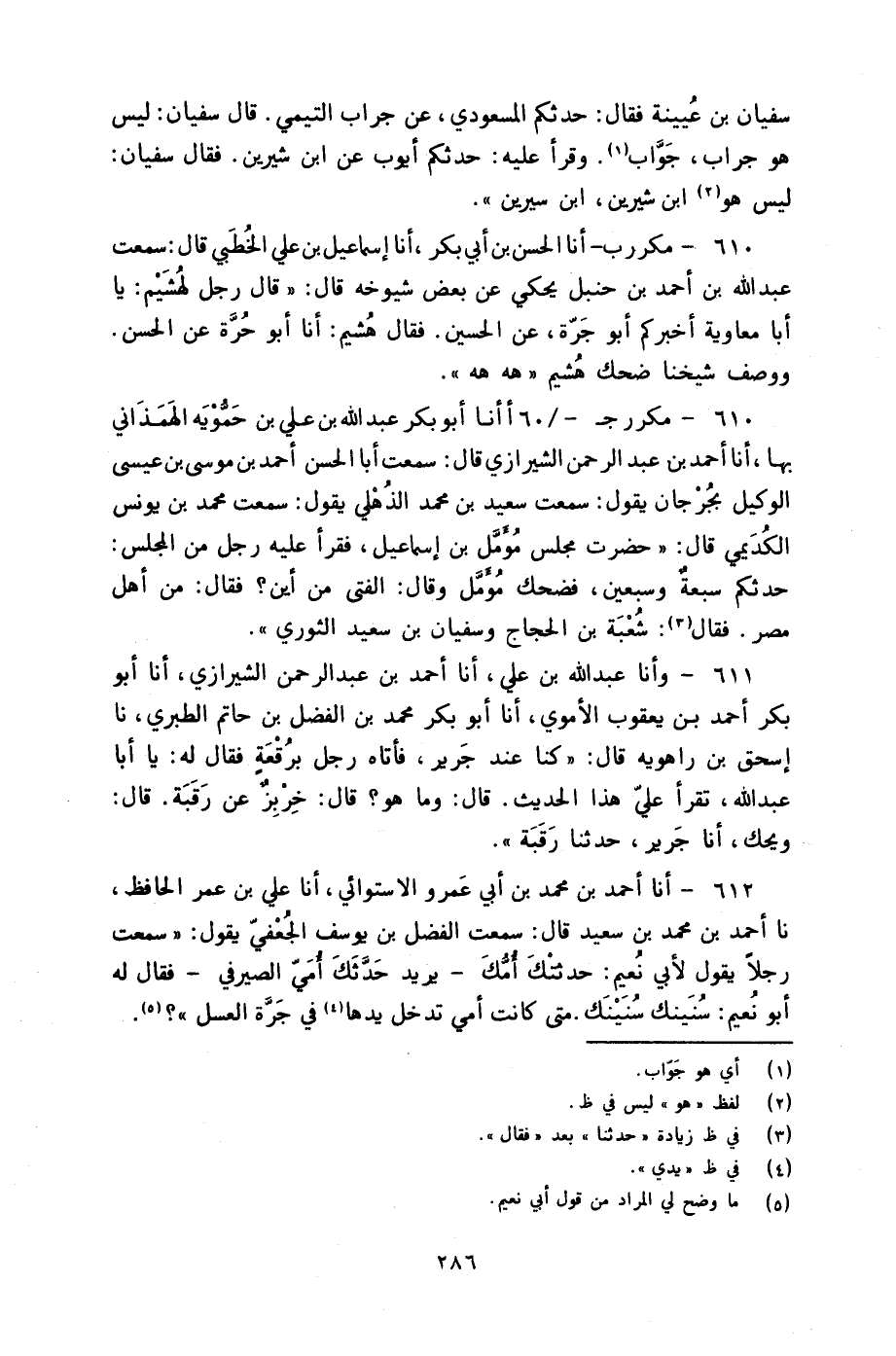 611 - وأنا عَبْدُ اللَّهِ بْنُ عَلِيٍّ، أنا أَحْمَدُ بْنُ عَبْدِ الرَّحْمَنِ الشِّيرَازِيُّ، أنا أَبُو بَكْرٍ أَحْمَدُ بْنُ يَعْقُوبَ الْأُمَوِيُّ، أنا أَبُو بَكْرٍ مُحَمَّدُ بْنُ الْفَضْلِ بْنِ حَاتِمٍ الطَّبَرِيُّ، نا إِسْحَاقُ بْنُ رَاهَوَيْهِ، قَالَ: " §كُنَّا عِنْدَ جَرِيرٍ فَأَتَاهُ رَجُلٌ بِرُقْعَةٍ فَقَالَ لَهُ: يَا أَبَا عَبْدِ اللَّهِ تَقْرَأُ عَلَيَّ هَذَا الْحَدِيثَ، قَالَ: وَمَا هُوَ؟ قَالَ: خِرْبِزٌ عَنْ رَقَبَةَ، قَالَ: «وَيْحَكَ، أنا جَرِيرٌ، حَدَّثَنَا رَقَبَةُ»