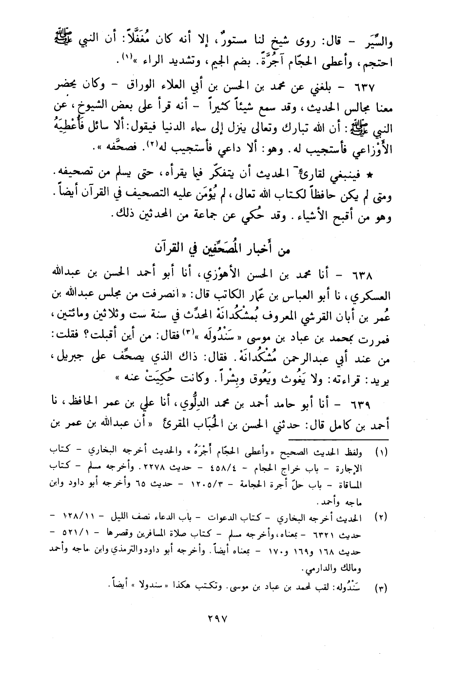 §مِنْ أَخْبَارِ الْمُصَحِّفِينَ فِي الْقُرْآنِ