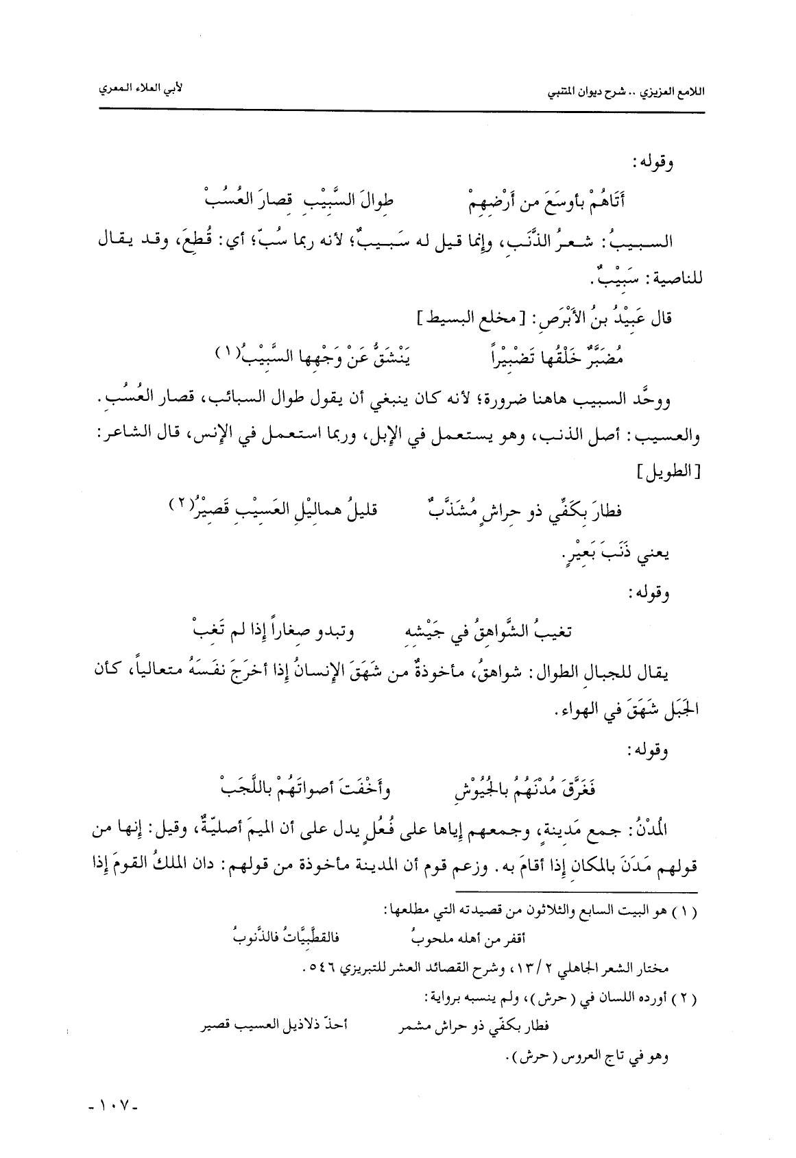 ووحد السبيب هاهنا ضرورة؛ لأنه كان ينبغي أن يقول طوال السبائب, قصار العسب.