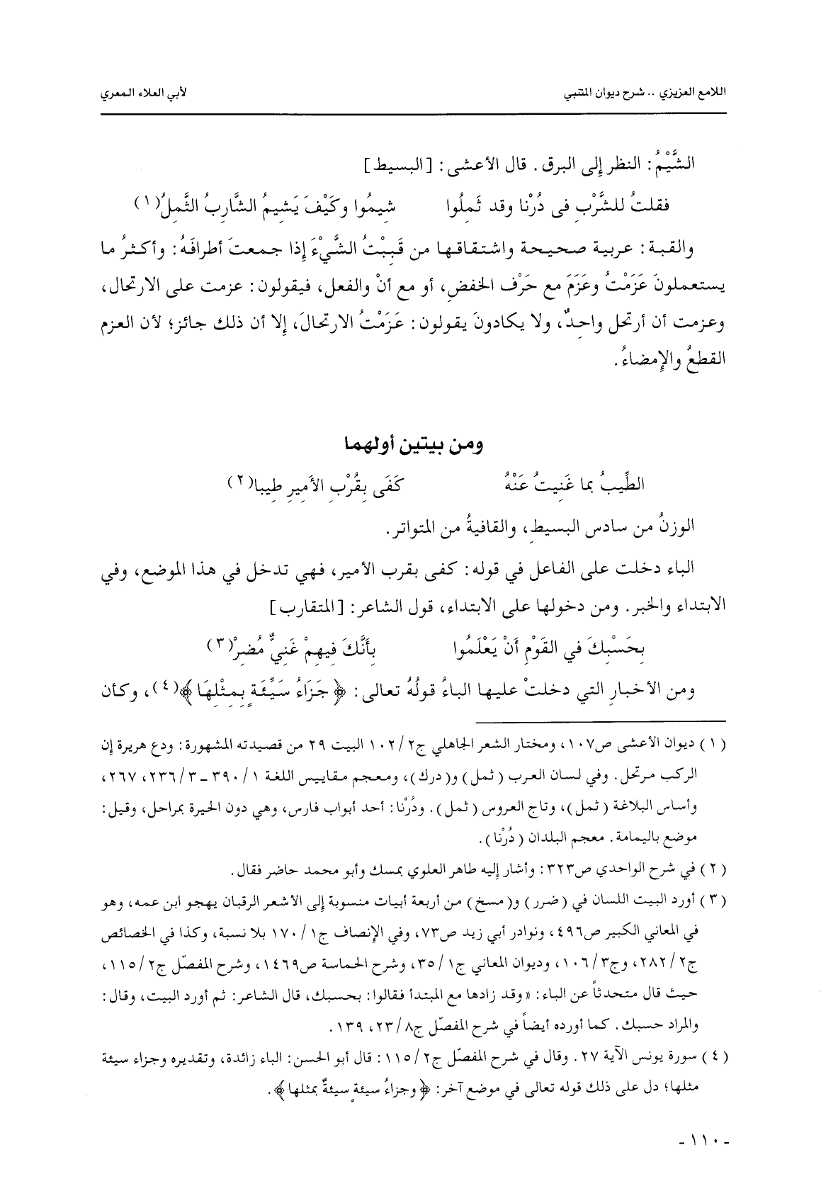 والقبة: عربية صحيحة واشتقاقها من قببت الشيء إذا جمعت أطرافه: وأكثر ما يستعملون عزمت وعزم مع حرف الخفض, أو مع أن والفعل, فيقولون: عزمت على الارتحال, وعزمت أن أرتحل واحد, ولا يكادون يقولون: عزمت الارتحال, إلا أن ذلك جائز؛ لأن العزم القطع والإمضاء.