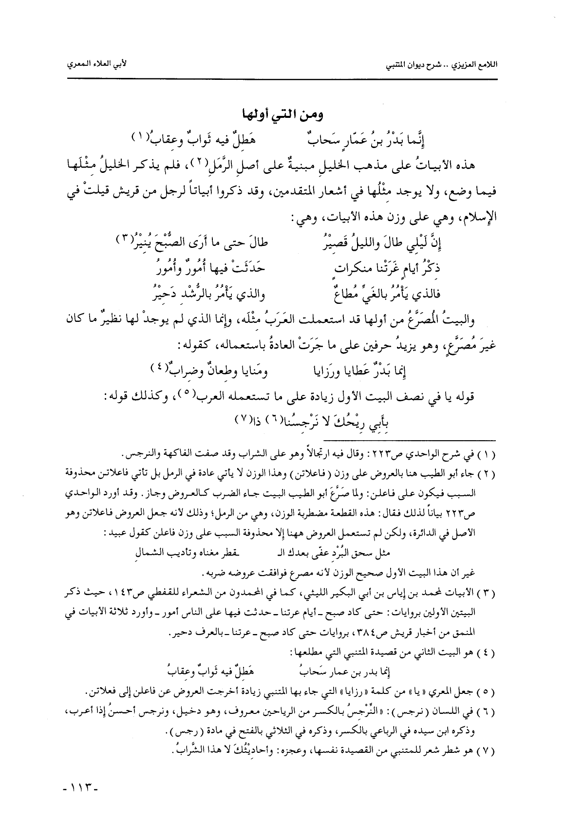 هذه الأبيات على مذهب الخليل مبنية على أصل الرمل, فلم يذكر الخليل مثلها فيما وضع, ولا يوجد مثلها في أشعار المتقدمين, وقد ذكروا أبياتًا لرجل من قريش قيلت في الإسلام, وهي على وزن هذه الأبيات, وهي: