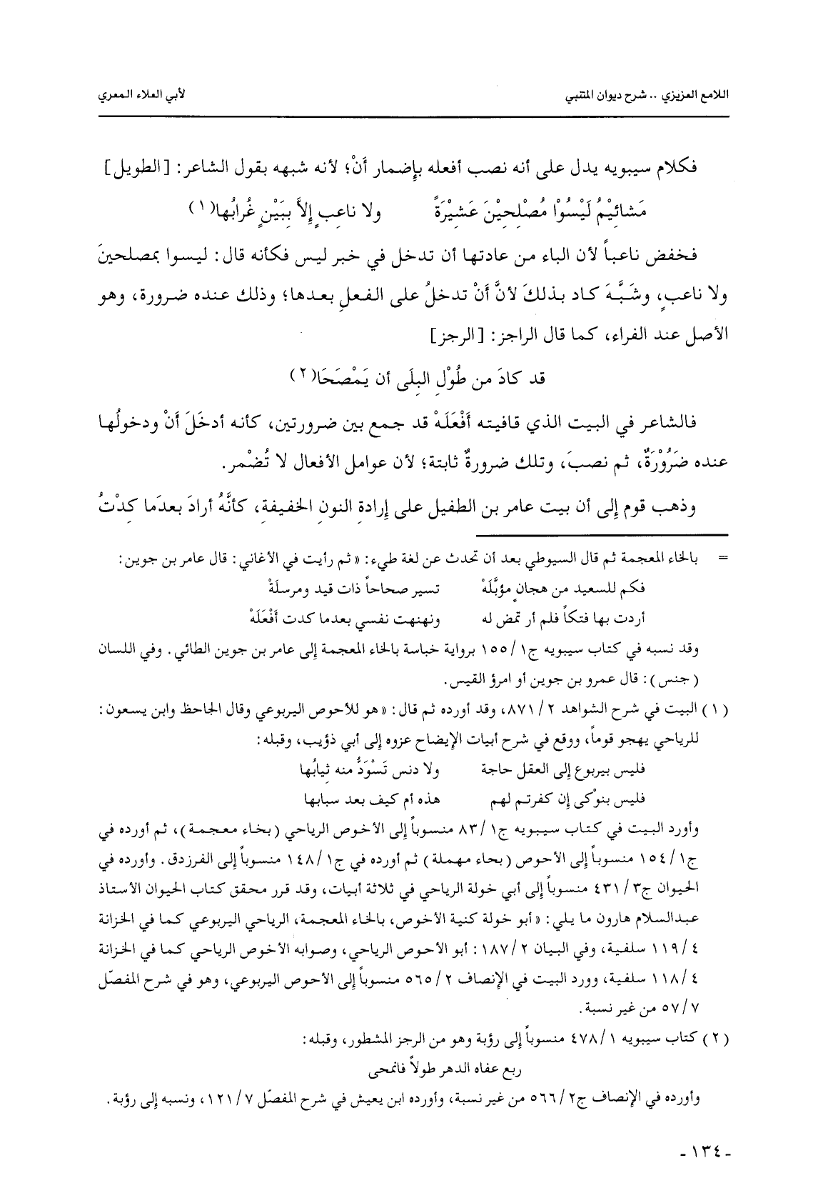فخفض ناعبًا لأن الباء من عادتها أن تدخل في خبر ليس فكأنه قال: ليسوا بمصلحين ولا ناعبٍ, وشبه كاد بذلك لأن أن تدخل على الفعل بعدها؛ وذلك عنده ضرورة, وهو الأصل عند الفراء, كما قال الراجز: [الرجز]