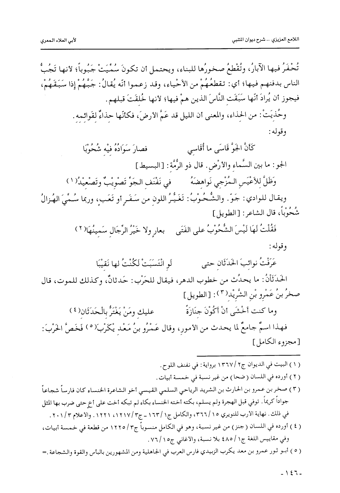 ويقال للوادي: جو. والشحوب: تغير اللون من سفرٍ أو تعبٍ, وربما سمي الهزال شحوبًا, قال الشاعر: [الطويل]
