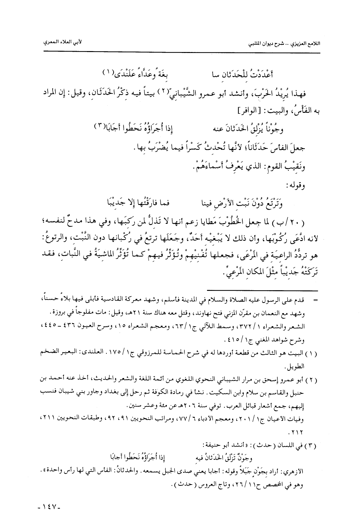 فهذا يريد الحرب, وأنشد أبو عمرو الشيباني بيتًا فيه ذكر الحدثان, وقيل: إن المراد به الفأس, والبيت: [الوافر]