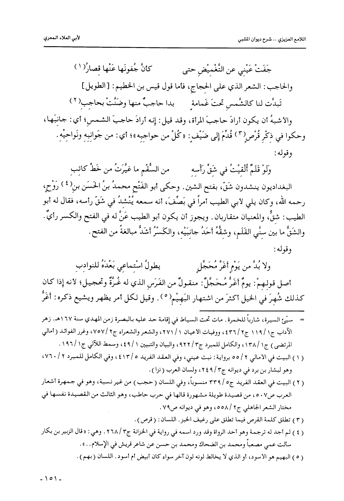 والأشبه أن يكون أراد حاجب المرأة, وقد قيل: إنه أراد حاجب الشمس؛ أي: جانبها, وحكوا في ذكر قرصٍ قدم إلى ضيفٍ: «كل من حواجبه»؛ أي: من جوانبه ونواحيه.