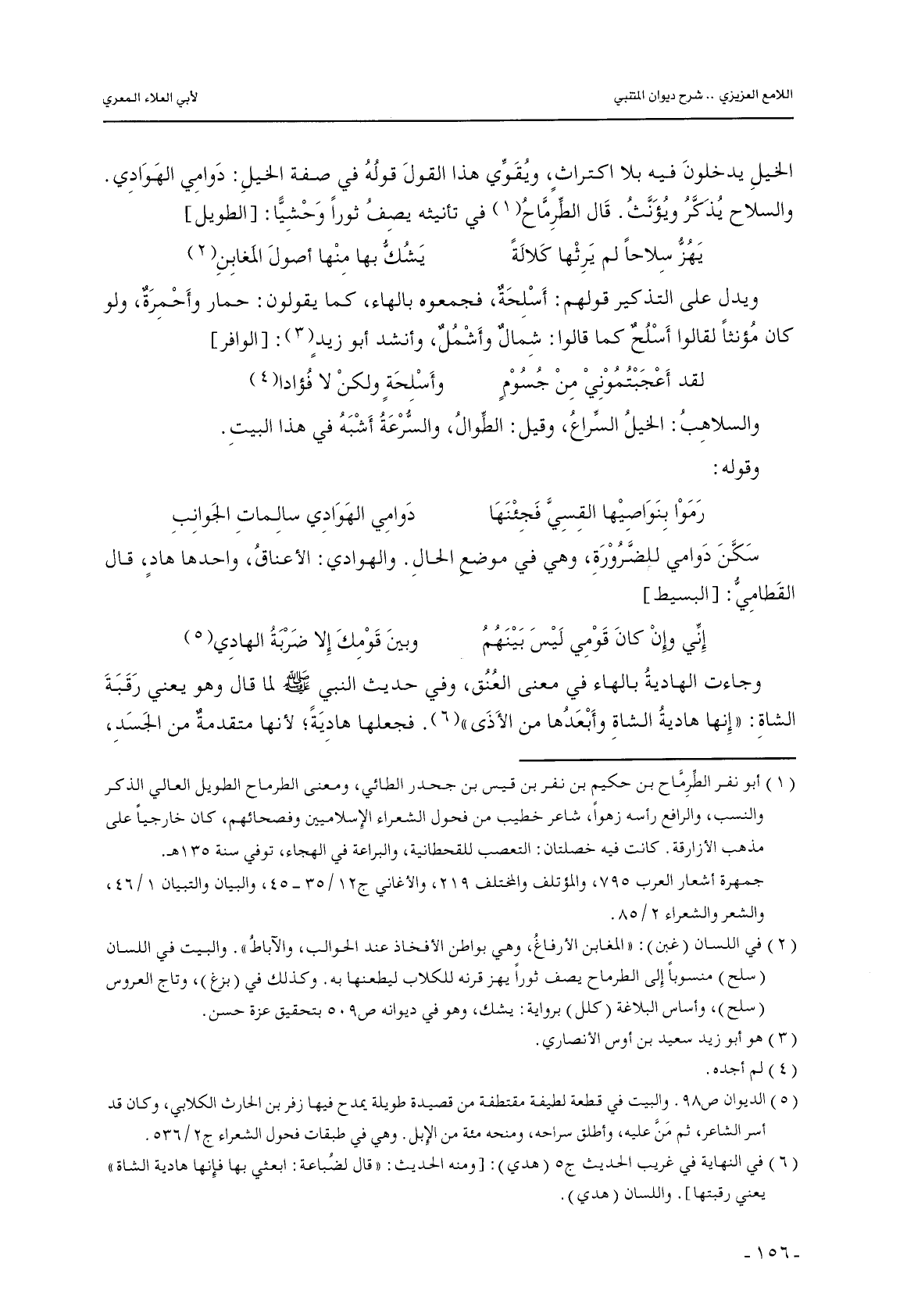 ويدل على التذكير قولهم: أسلحة, فجمعوه بالهاء, كما يقولون: حمار وأحمرة, ولو كان مؤنثًا لقالوا أسلح كما قالوا: شمال وأشمل, وأنشد أبو زيدٍ: [الوافر]