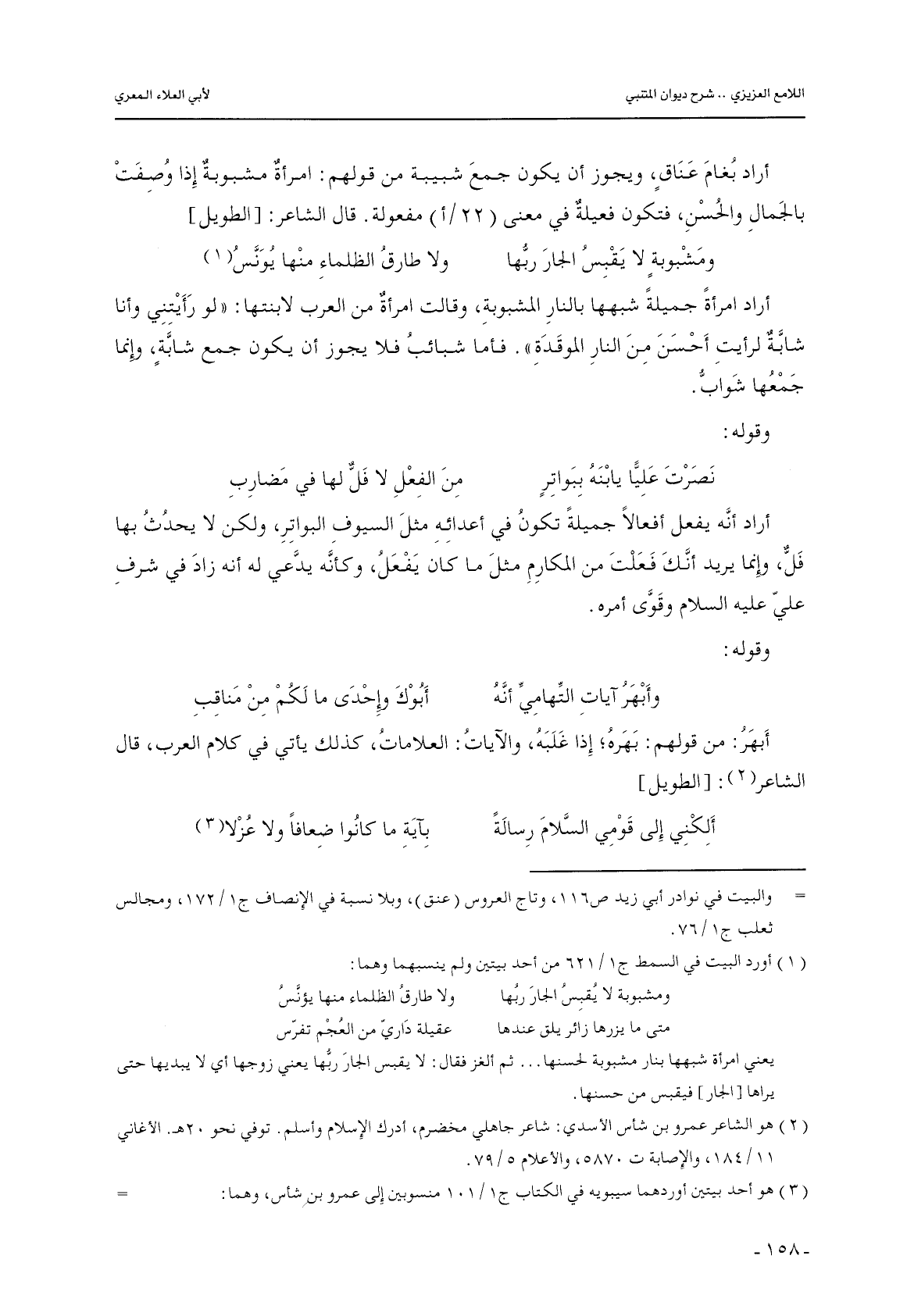 أراد بغام عتاقٍ, ويجوز أن يكون جمع شبيبة من قولهم: امرأة مشبوبة إذا وصفت بالجمال والحسن, فتكون فعيلة في معنى (22/أ) مفعولة. قال الشاعر: [الطويل]