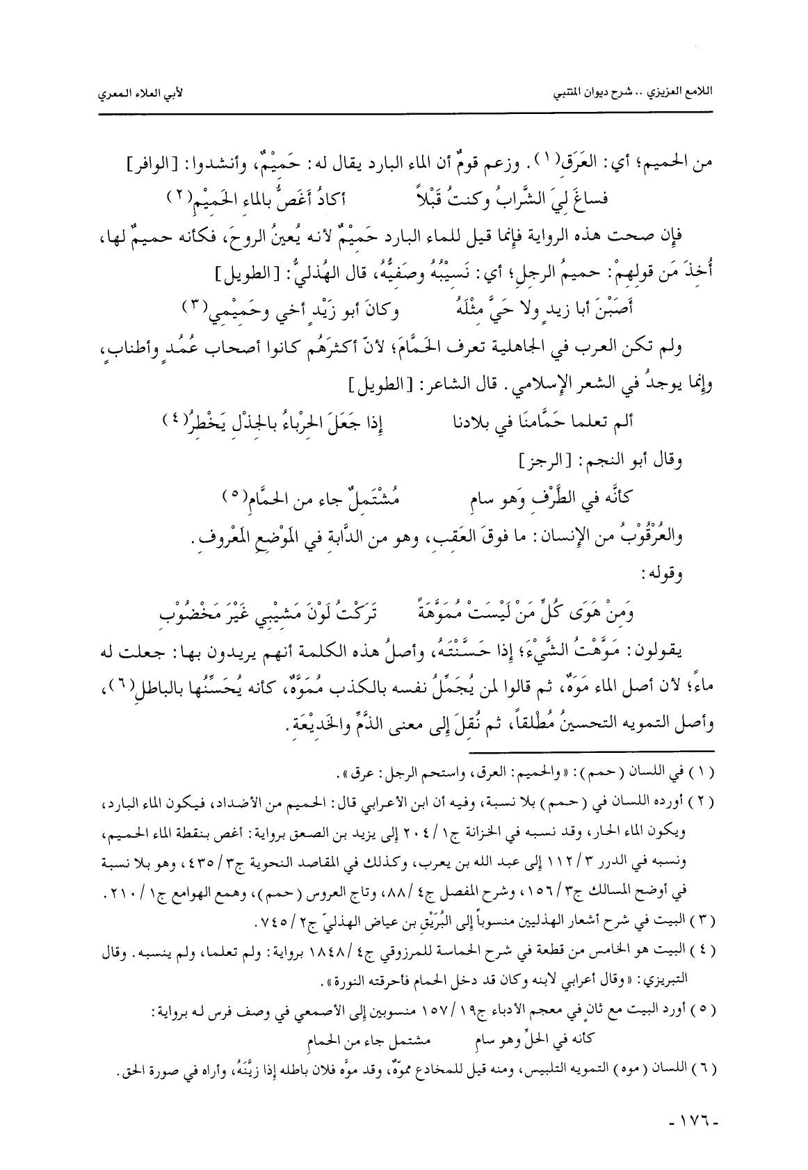 فإن صحت هذه الرواية فإنما قيل للماء البارد حميم لأنه يعين الروح, فكأنه حميم لها, أخذ من قولهم: حميم الرجل؛ أي: نسيبه وصفيه, قال الهذلي: [الطويل]