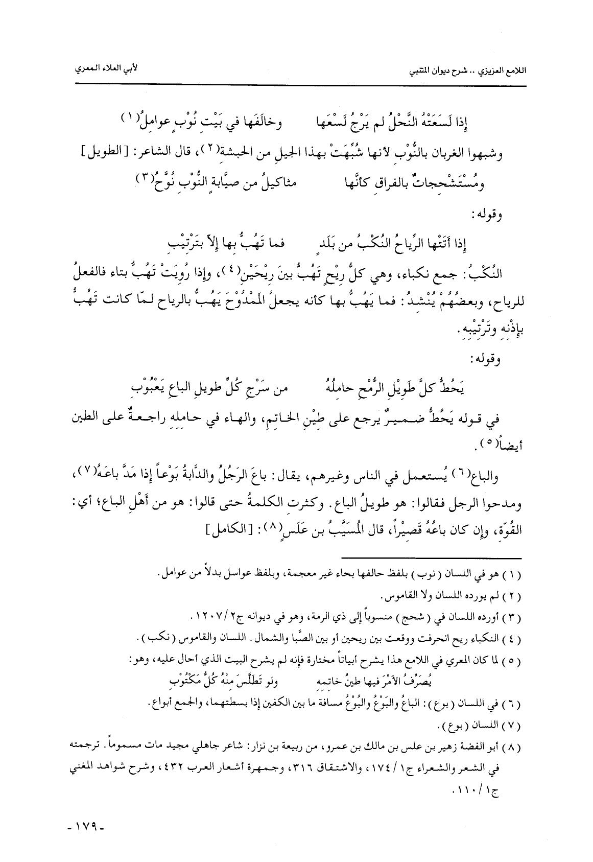 النكب: جمع نكباء, وهي كل ريحٍ تهب بين ريحين, وإذا رويت تهب بتاء فالفعل للرياح, وبعضهم ينشد: فما يهب بها كأنه يجعل الممدوح يهب بالرياح لما كانت تهب بإذنه وترتيبه.