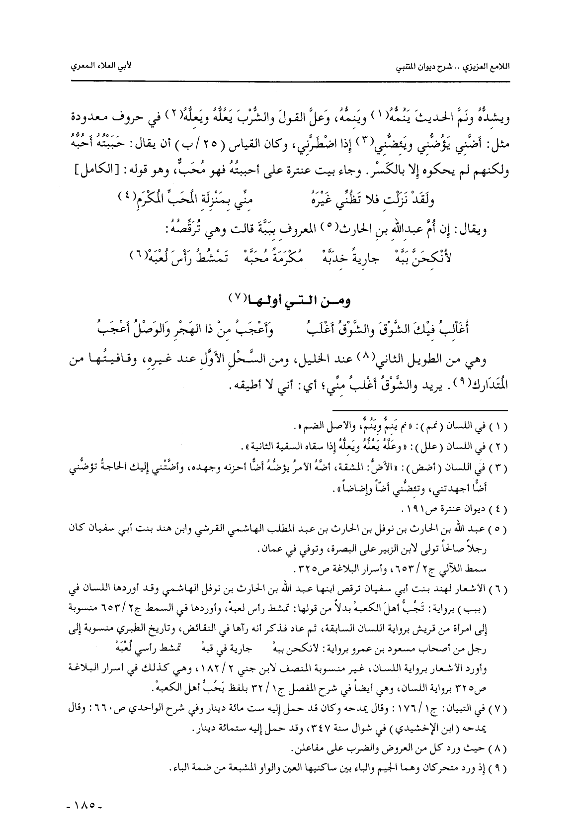 ويشده ونم الحديث ينمه وينمه, وعل القول والشرب يعله ويعله في حروف معدودة مثل: أضني يؤضني ويئضني إذا اضطرني, وكان القياس (25/ب) أن يقال: حببته أحبه ولكنهم لم يحكوه إلا بالكسر. وجاء بيت عنترة على أحببته فهو محب, وهو قوله: [الكامل]