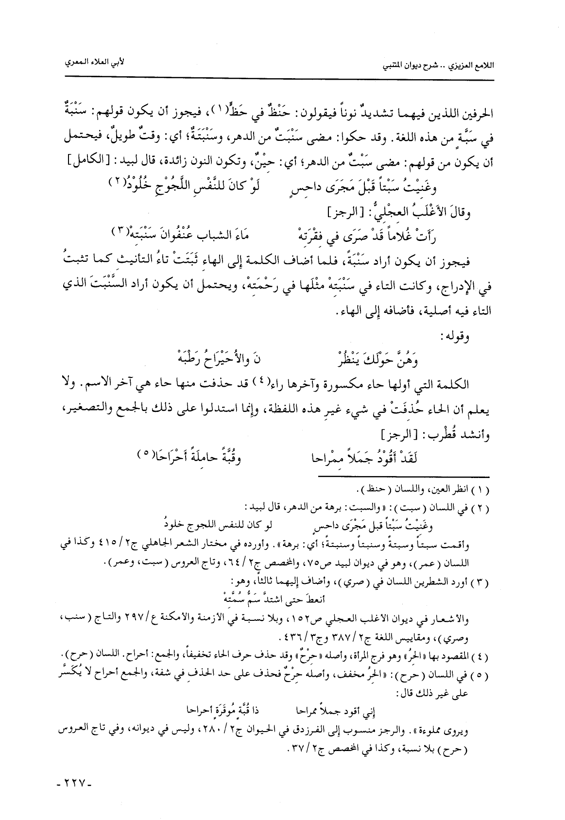 الكلمة التي أولها حاء مكسورة وآخرها راء قد حذفت منها حاء هي آخر الاسم. ولا يعلم أن الحاء حذفت في شيء غير هذه اللفظة, وإنما استدلوا على ذلك بالجمع والتصغير, وأنشد قطرب: [الرجز]