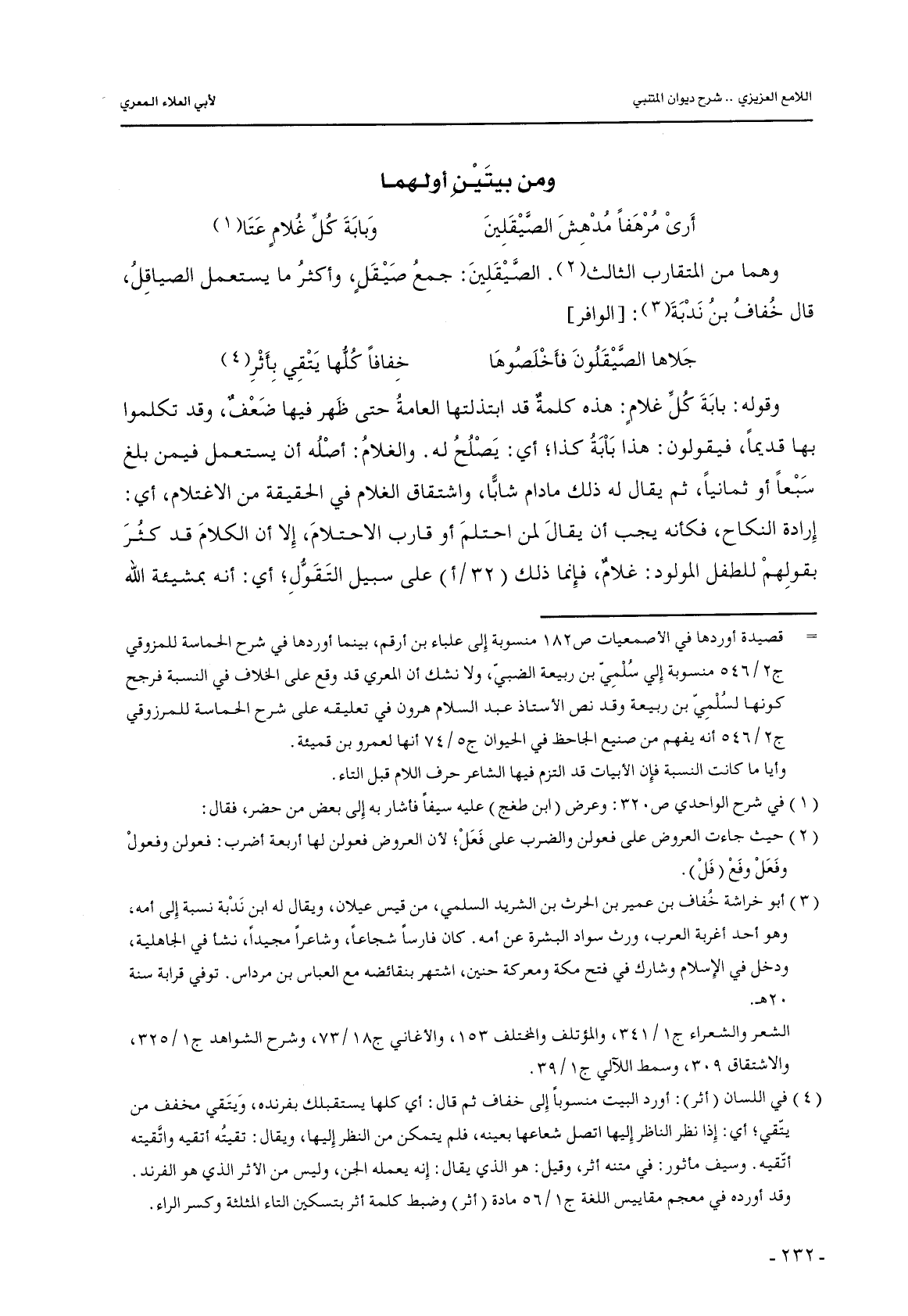 وهما من المتقارب الثالث. الصيقلين: جمع صيقلٍ, وأكثر ما يستعمل الصياقل, قال خفاف بن ندبة: [الوافر]