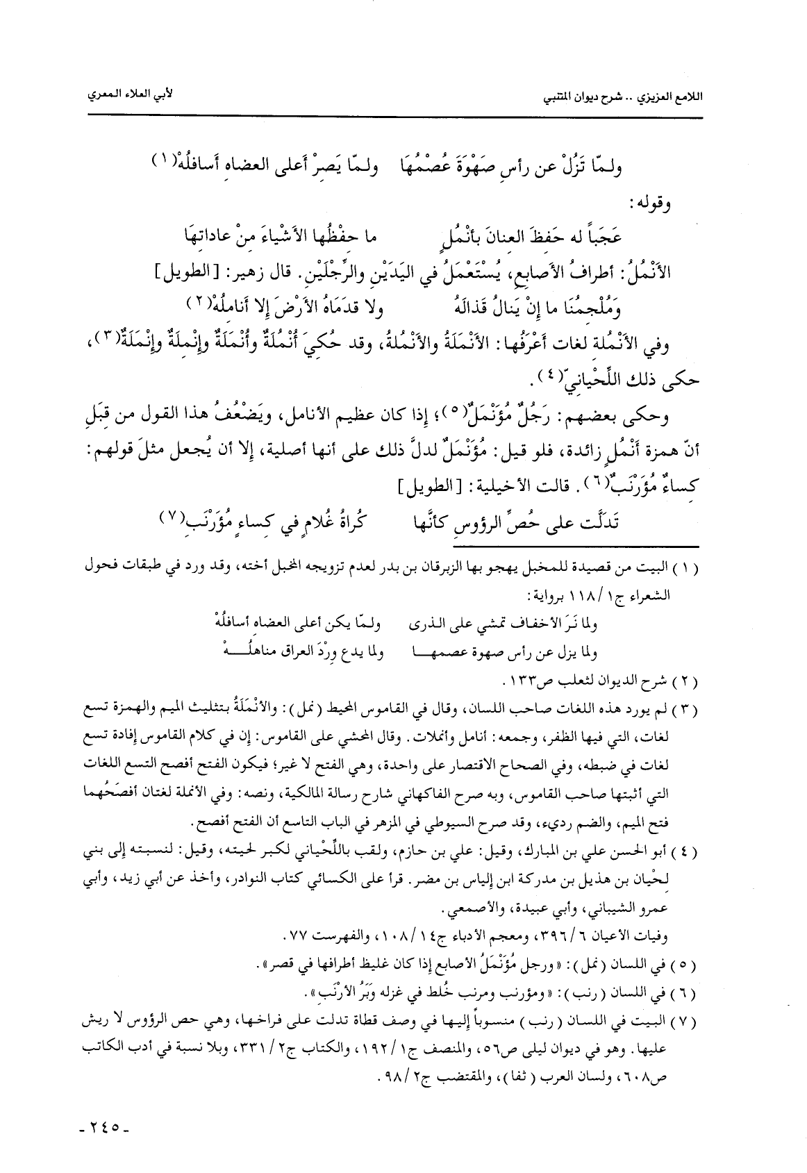 الأنمل: أطراف الأصابع, يستعمل في اليدين والرجلين. قال زهير: [الطويل]