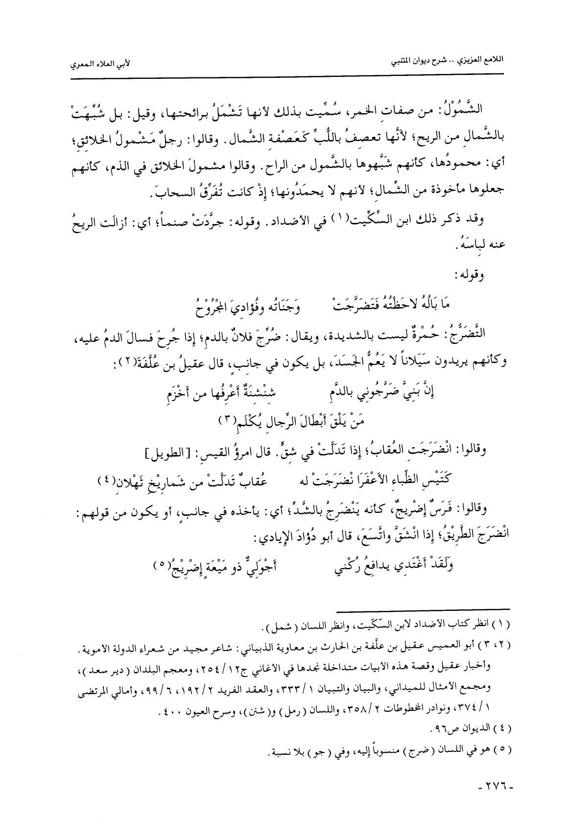 التضرج: حمرة ليست بالشديدة, ويقال: ضرج فلان بالدم؛ إذا جرح فسال الدم عليه, وكأنهم يريدون سيلانًا لا يعم الجسد, بل يكون في جانبٍ, قال عقيل بن علفة: