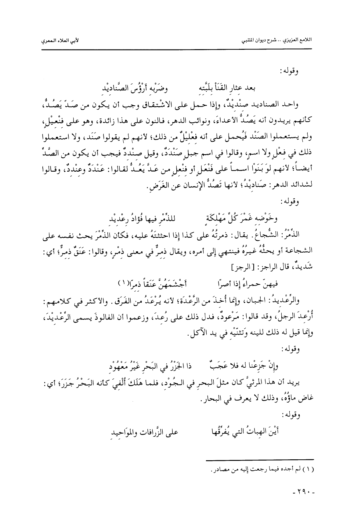 واحد الصناديد صنديد, وإذا حمل على الاشتقاق وجب أن يكون من صد يصد, كأنهم يريدون أنه يصد الأعداء, ونوائب الدهر, فالنون على هذا زائدة, وهو على فنعيلٍ, ولم يستعملوا الصند فيحمل على أنه فعليل من ذلك؛ لأنهم لم يقولوا صند, ولا استعملوا ذلك في فعلٍ ولا اسمٍ, وقالوا في اسم جبلٍ صندد, وقيل صندد فيجب أن يكون من الصد أيضًا؛ لأنهم لو بنواة اسمًا على فنعلٍ أو فنعلٍ من عد يعد لقالوا: عندد وعندد, وقالوا لشدائد الدهر: صناديد؛ لأنها تصد الإنسان عن الغرض.
