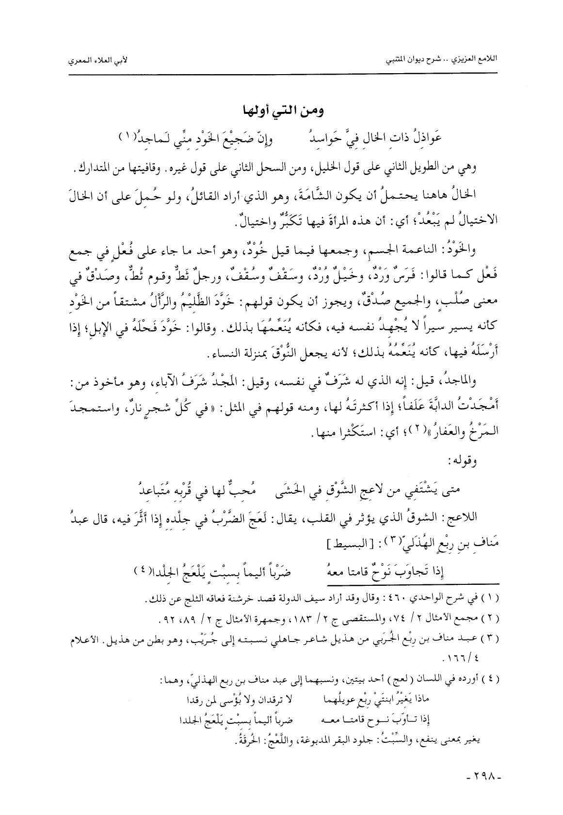 اللاعج: الشوق الذي يؤثر في القلب, يقال: لعج الضرب في جلده إذا أثر فيه, قال عبد مناف بن ربعٍ الهذلي: [البسيط]