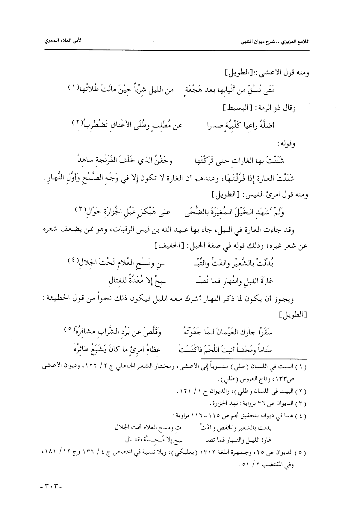 وقد جاءت الغارة في الليل, جاء بها عبيد الله بن قيس الرقيات, وهو ممن يضعف شعره عن شعر غيره؛ وذلك قوله في صفة الخيل: [الخفيف]