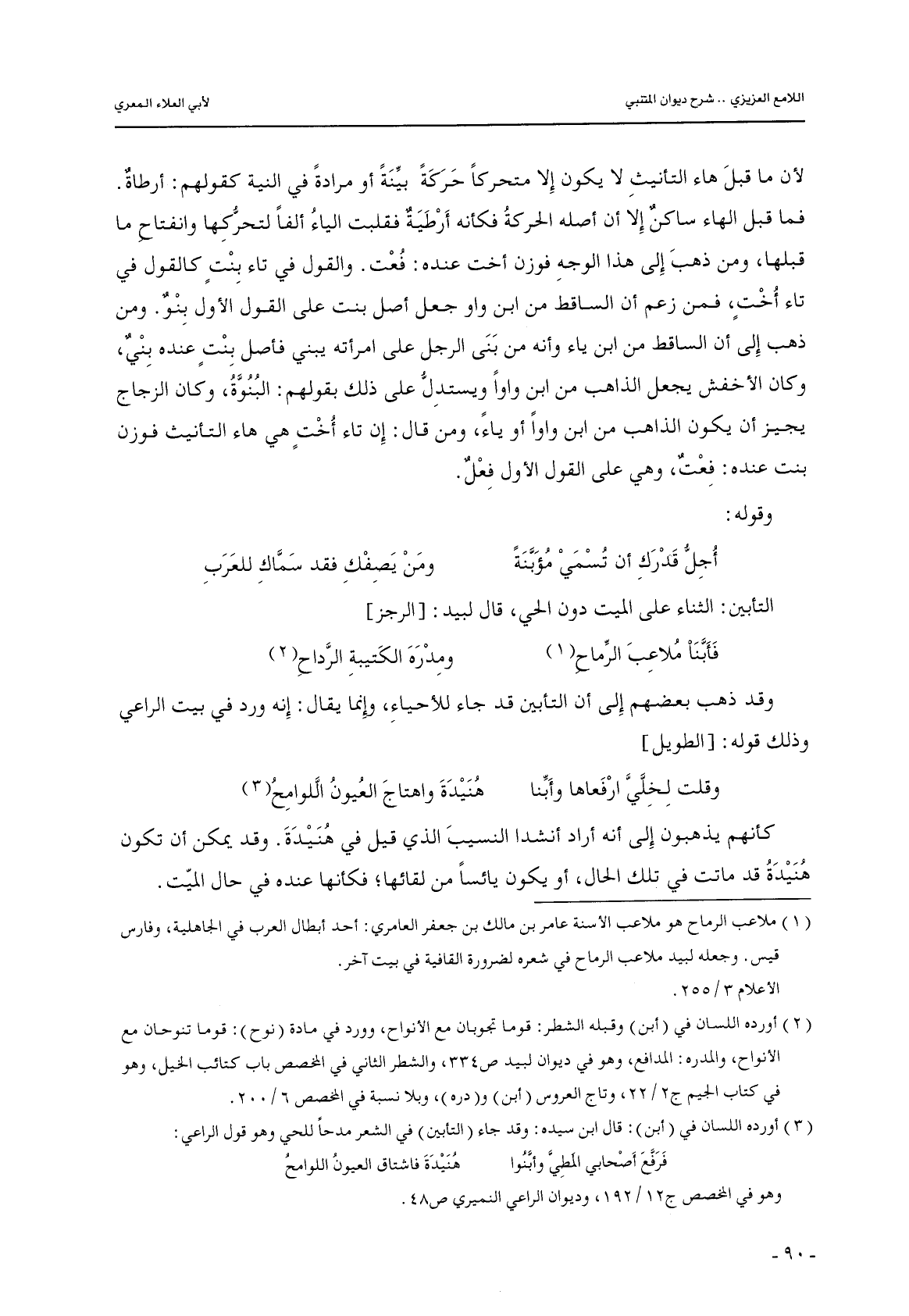 لأن ما قبل هاء التأنيث لا يكون إلا متحركًا حركةً بينةً أو مرادةً في النية كقولهم: أرطاة. فما قبل الهاء ساكن إلا أن أصله الحركة فكأنه أرطية فقلبت الياء ألفًا لتحركها وانفتاح ما قبلها, ومن ذهب إلى هذا الوجه فوزن أخت عنده: فعت. والقول في تاء بنتٍ كالقول في تاء أختٍ, فمن زعم أن الساقط من ابن واو جعل أصل بنت على القول الأول بنو. ومن ذهب إلى أن الساقط من ابن ياء وأنه من بنى الرجل على امرأته يبني فأصل بنتٍ عنده بني, وكان الأخفش يجعل الذاهب من ابن واوًا ويستدل على ذلك بقولهم: البنوة, وكان الزجاج يجيز أن يكون الذاهب من ابن واوًا أو ياءً, ومن قال: إن تاء أختٍ هي هاء التأنيث فوزن بنت عنده: فعت, وهي على القول الأول فعل.