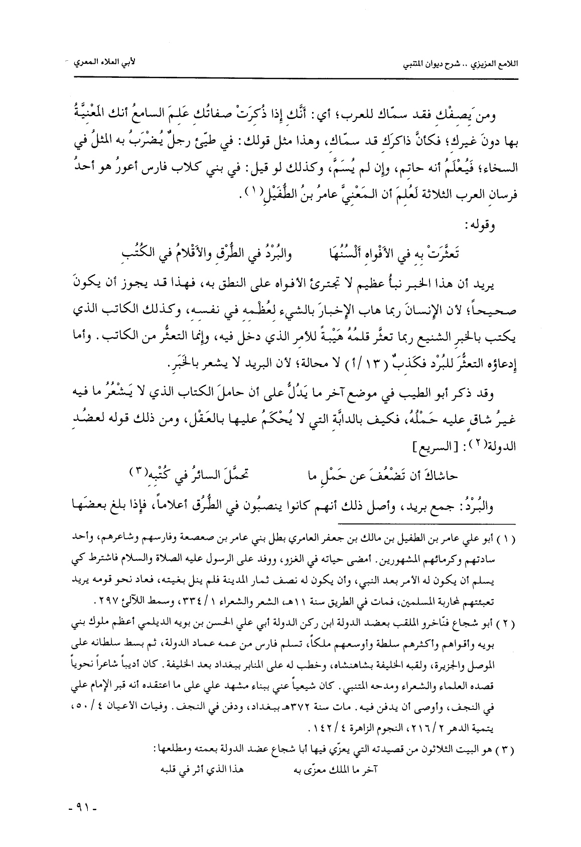 وقد ذكر أبو الطيب في موضع آخر ما يدل على أن حامل الكتاب الذي لا يشعر ما فيه غير شاقٍ عليه حمله, فكيف بالدابة التي لا يحكم عليها بالعقل, ومن ذلك قوله لعضد الدولة: [السريع]