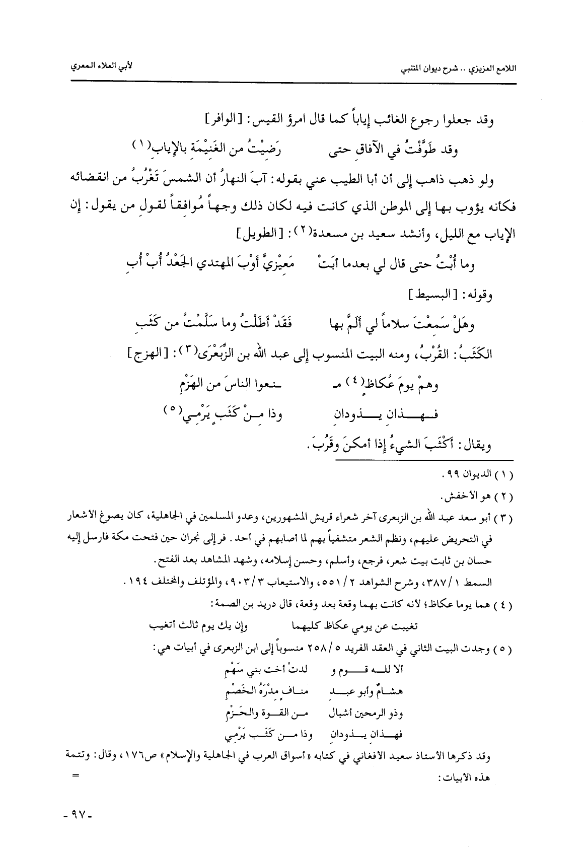 ولو ذهب ذاهب إلى أن أبا الطيب عني بقوله: آب النهار أن الشمس تغرب من انقضائه فكأنه يؤوب بها إلى الموطن الذي كانت فيه لكان ذلك وجهًا موافقًا لقول من يقول: إن الإياب مع الليل, وأنشد سعيد بن مسعدة: [الطويل]